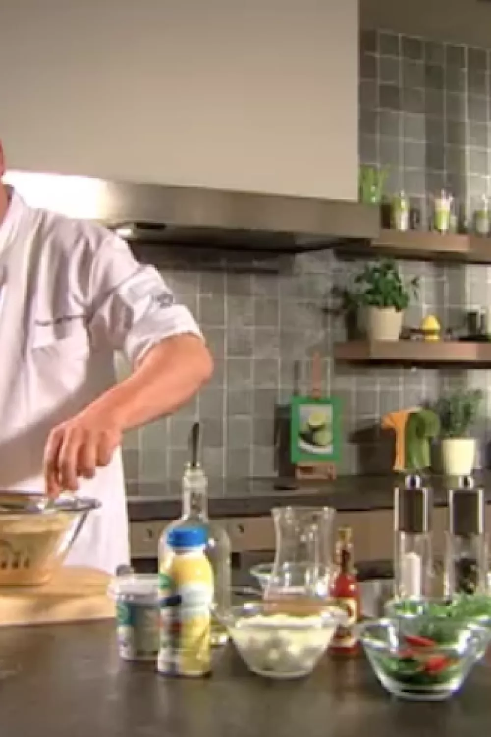 Klop de verse kaas los tot een smeuïge massa en verfris met limoensap. Doe de opgeklopte kaas in een spuitzak.