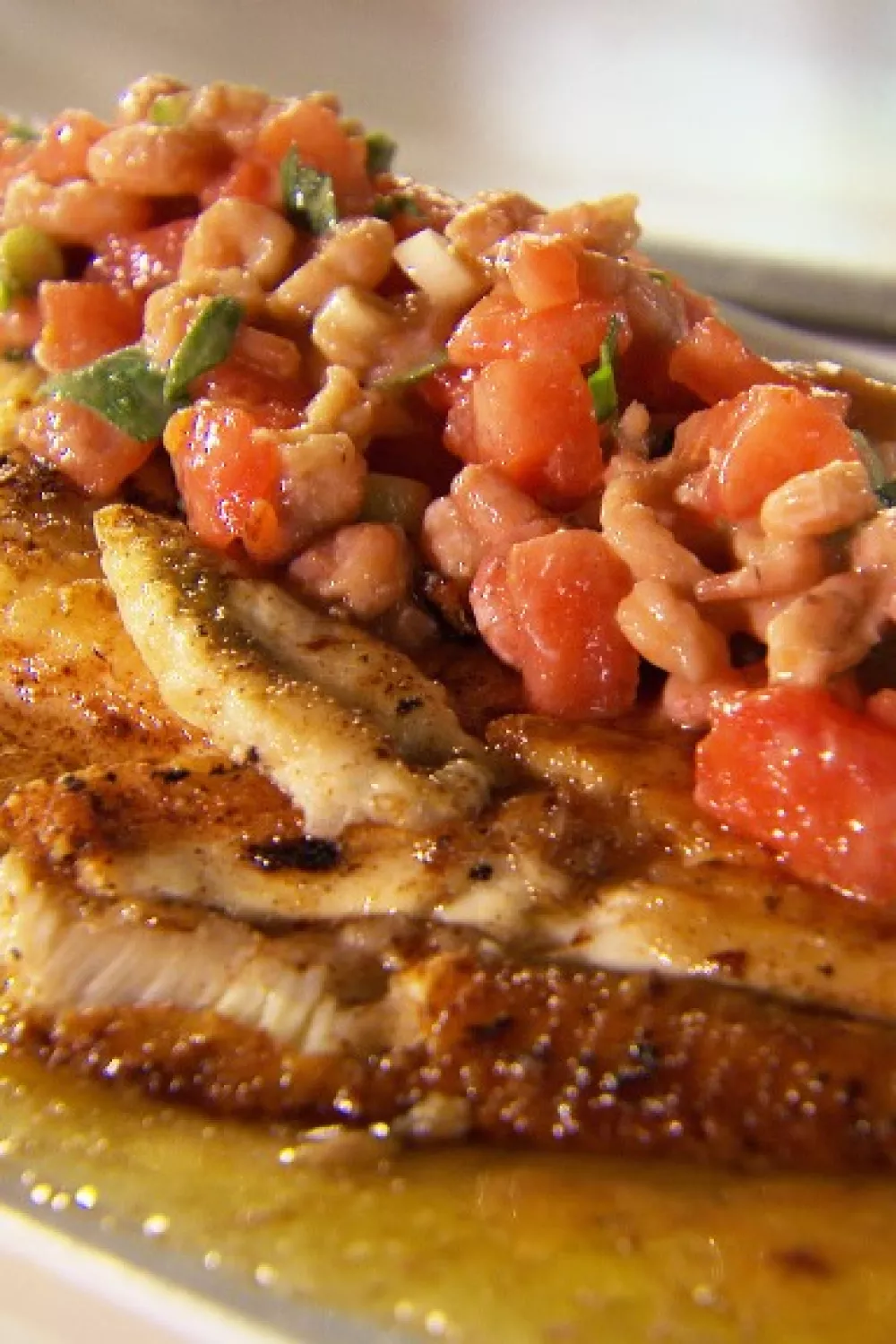 Dit lichte zeevruchtengerecht combineert krokant gebakken pladijs met een frisse salsa van tomaat en grijze garnalen voor een zomerse maar verfijnde smaak. Een romige mayonaise op basis van eidooier en maïsolie en een citroenboter waarmee je de pan deglaceert geven het visfilet extra rijkdom, terwijl gestoomde aardappelen het bord mooi afmaken. Perfect voor een informele avondmaaltijd of een feestelijk diner en eenvoudig te bereiden met bakken en stomen.