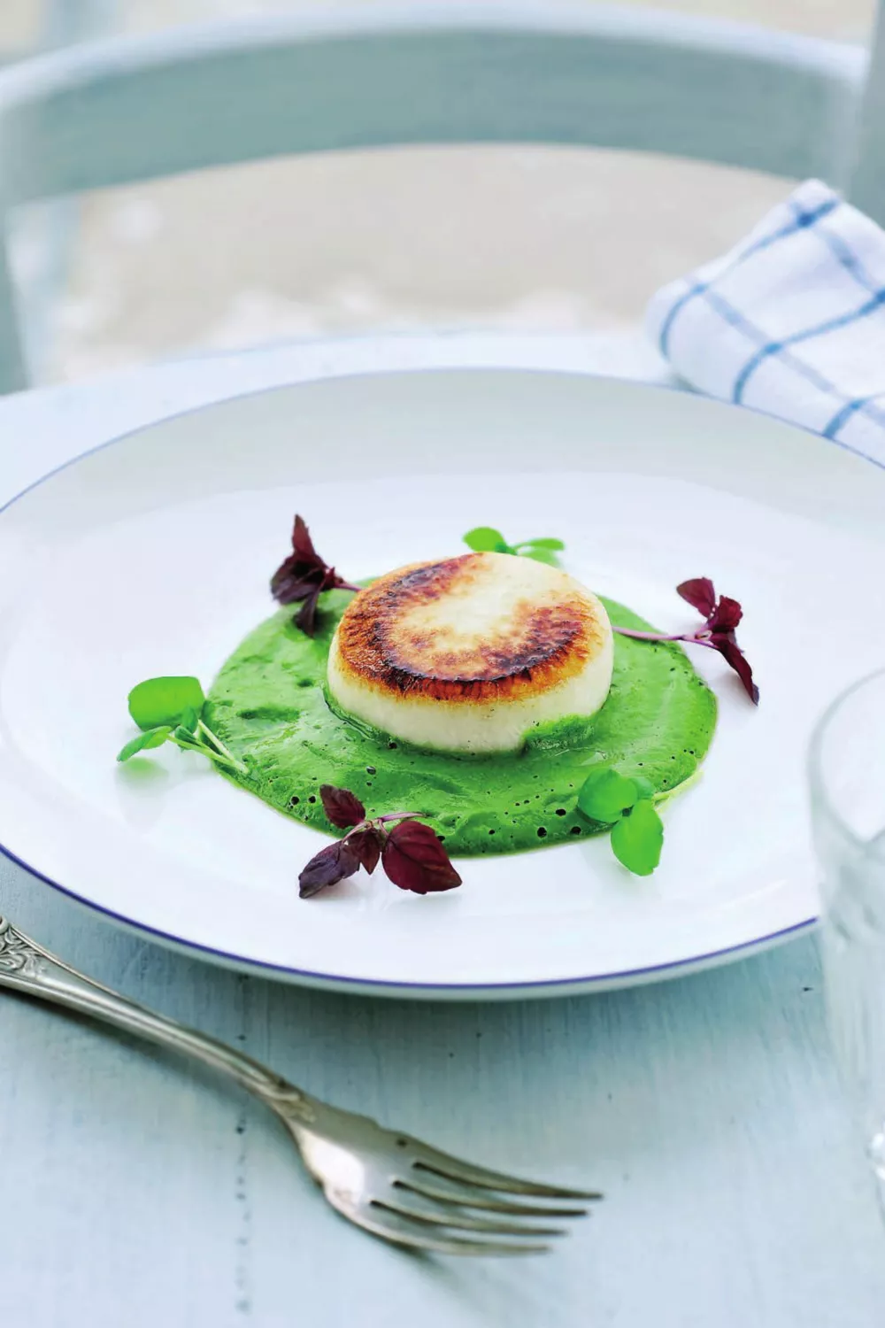 Knapperig gebakken schijven van zoete witte raap ontmoeten een frisse waterkerscoulis met aromatische shiso en een vleugje knoflook. De rapen worden eerst zacht in groentebouillon gegaard en daarna in sesam- en sojaolie gebakken en even laten doorgaren onder folie, terwijl de waterkers kort geblancheerd en gepureerd wordt tot een zijdezachte saus. Dit licht vegetarisch bijgerecht met Aziatisch getinte smaken past perfect bij lente- en zomerdiners of als verfijnde starter bij gegrilde vis of vlees.
