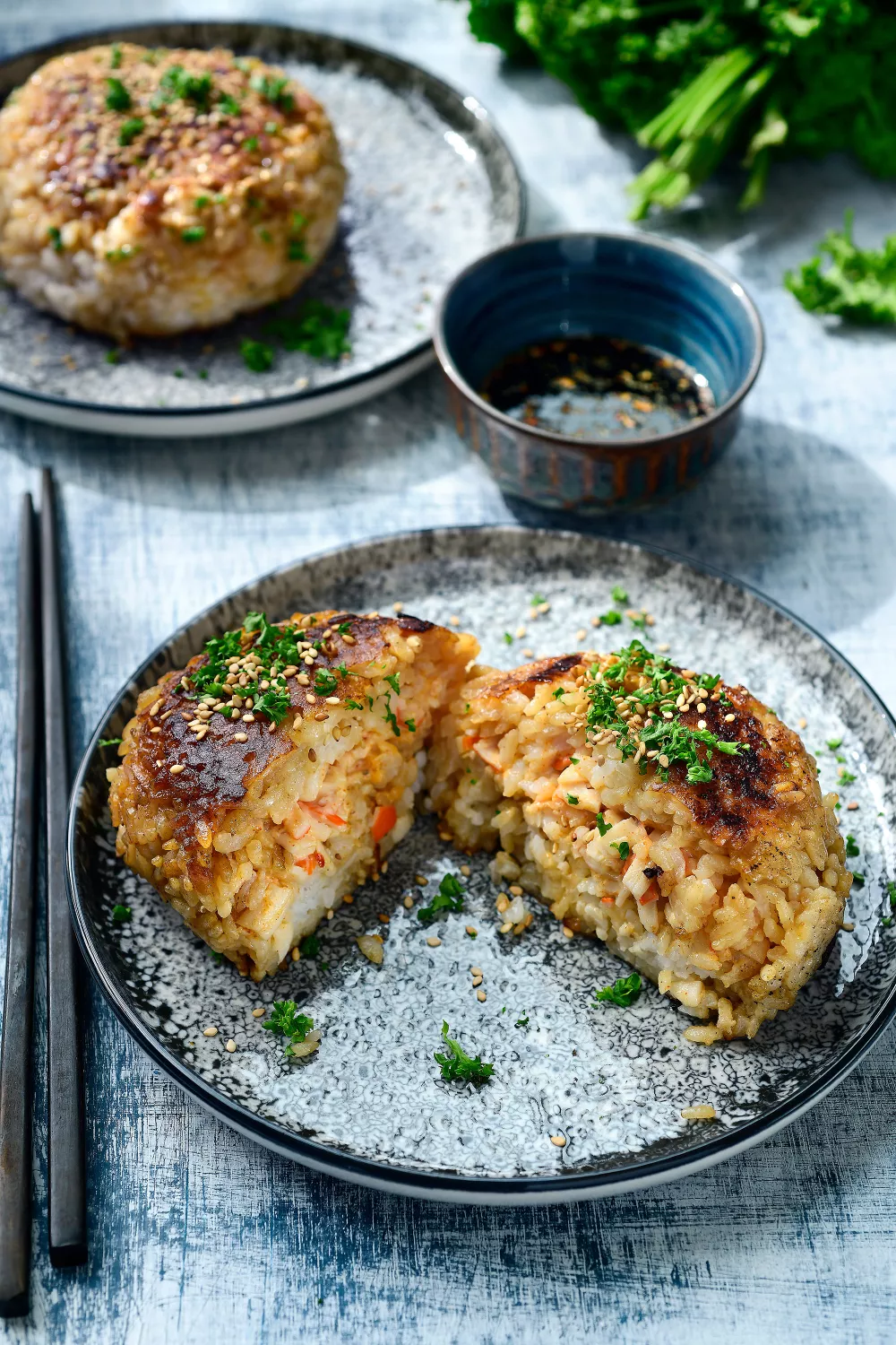 Zachte sushi rijst vormt krokante rijstburgers gevuld met pittige surimi, mayo, limoen en geroosterd sesam voor een frisse Aziatisch geïnspireerde bite. In de pan goudbruin gebakken en afgewerkt met peterselie en sesamzaadjes, ideaal als borrelhap, lichte lunch of zomerse avondmaaltijd. Serveer met een sriracha sojasaus voor een extra umami kick.