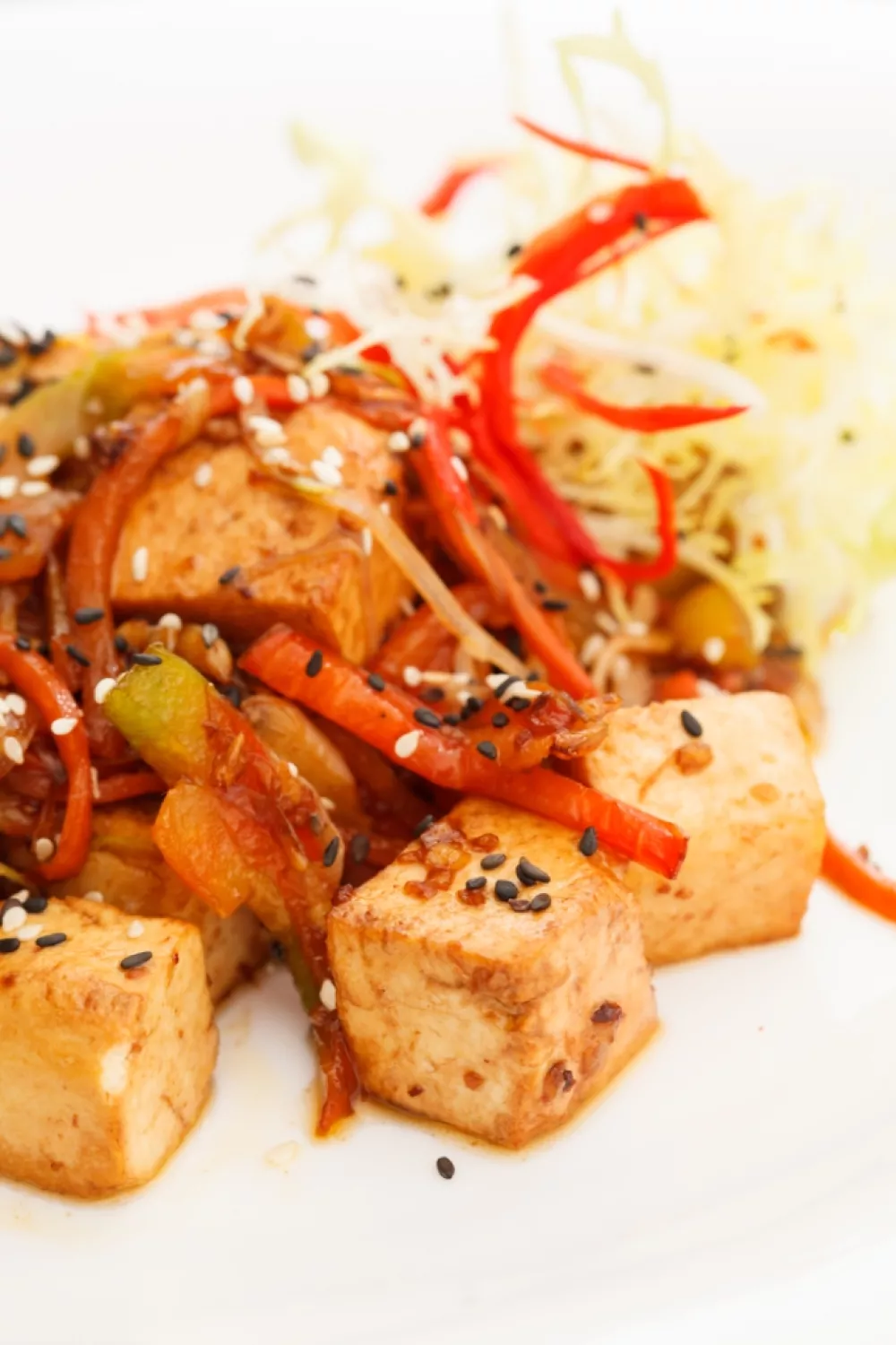 Knapperig gebakken tofu met aromatisch citroengras en kleurrijke gewokte groenten, geserveerd met geurige jasmijnrijst, brengt lichte Aziatische smaken naar je bord. De tofu wordt kort gebakken en opgefrist met lichte en donkere sojasaus en een vleugje vijfkruidenpoeder, terwijl de wokgroenten knapperig blijven en sojascheuten als laatste erbij komen. Een snel, gezond en vegetarisch gerecht dat perfect is voor een doordeweeks diner of een zomerse maaltijd.