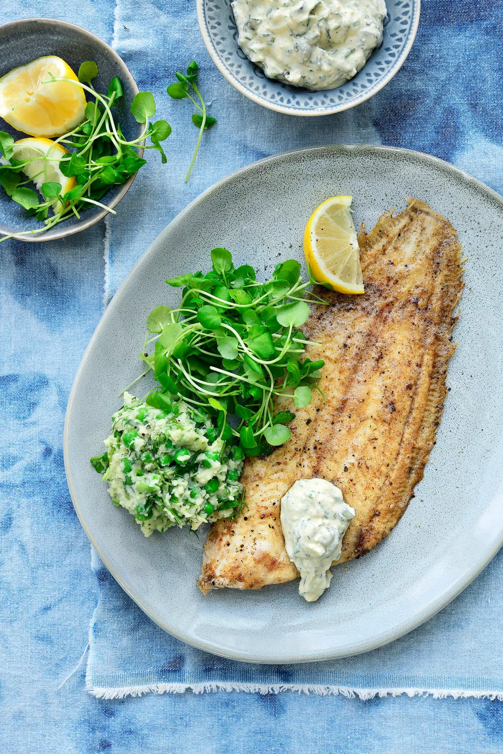 Gebakken tong met erwtjes-waterkersstoemp en tartaarsaus