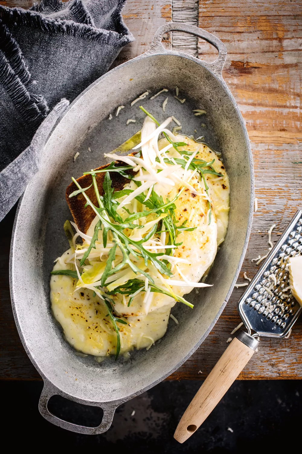 Wanneer de dagen korter en kouder worden, is een gegratineerde croque de ideale winterkost. Een lekker verwarmende hap.