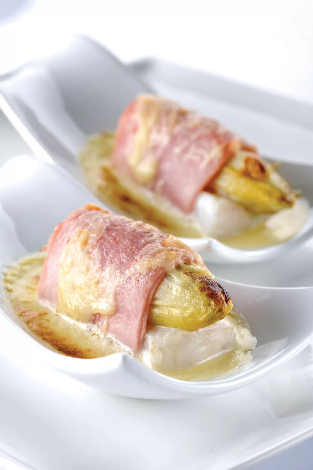 Gegratineerde griet met witloof in ham