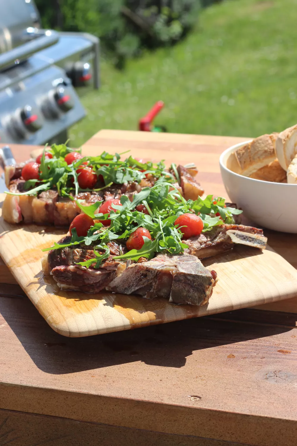 Gegrilde cote a l’os met gemarineerde tomaatjes
