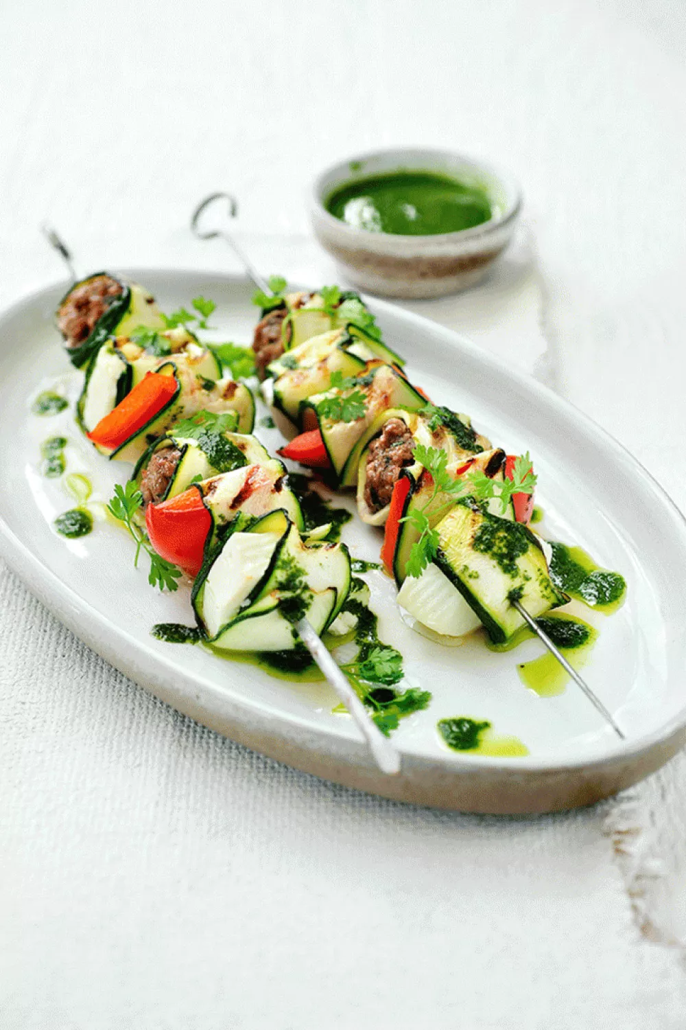 Stappenplan om recept “Gegrilde Griekse groentesaté met lamsgehakt” te bereiden