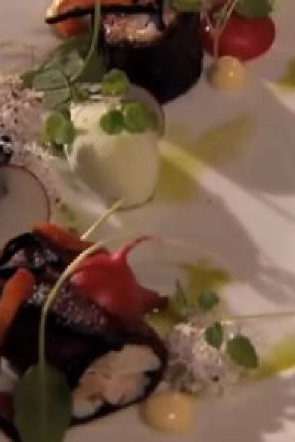 Een elegant voorgerecht waarin gestoomde Bretoense kreeft samenkomt met dun gesneden rundsvlees en nori rolletjes, afgewerkt met een zijdezachte basilicumolie. Gekonfijte tomaat, dragon en geraspte kokos brengen zoete en kruidige accenten, terwijl gemarineerde hijiki en knapperige radijsjes zorgen voor textuur en umami. Perfect voor een feestelijk diner of zomerse borrel als verfijnde amuse of luxe voorgerecht.