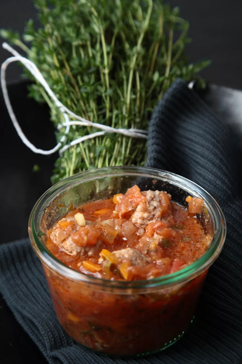 Meng het gehakt met de eidooier en het paneermeel. Kruid bij met peper en zout. Vorm balletjes. Stoof de groenten kort aan in olijfolie. Voeg de balletjes toe en laat ze meestoven. Giet de tomatensaus over het vlees, kruid met paprikapoeder en laurier. Laat ca. 45 min. sudderen.