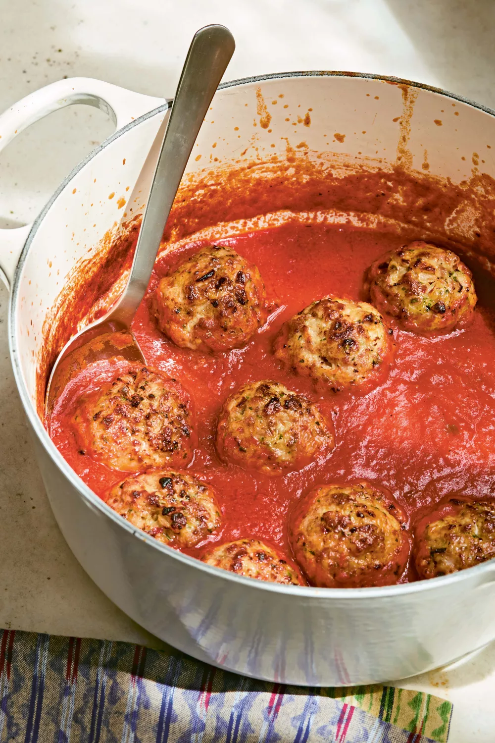 Haal de gehaktballen uit de oven en leg ze in de sudderende saus. Voeg indien nodig nog eens 120 milliliter water toe zodat ze gedeeltelijk zijn ondergedompeld.