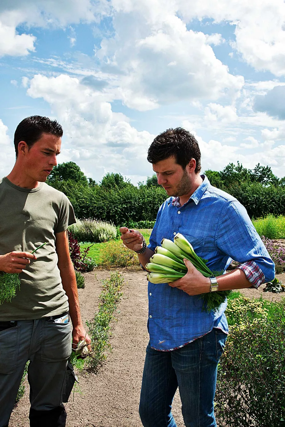 Verdeel de bietjes en eendenmaagjes over twee borden. Werk af met de gerookte eendenborst en Oost-Indische kers.