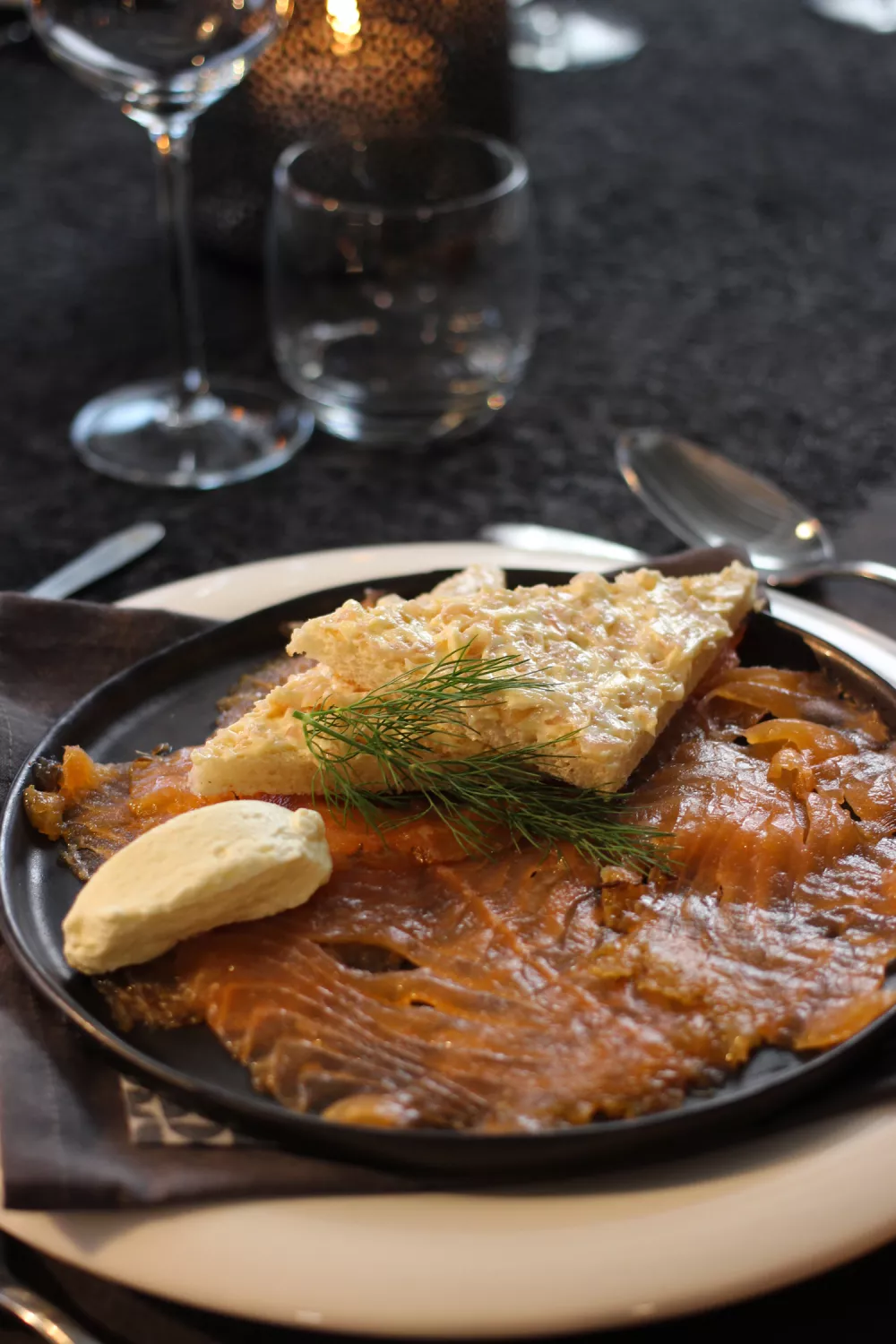 Een verfijnd voorgerecht voor feestelijke borrels en zomerse diners: zacht gekonfijte zalm met pittige wasabiroom en krokante toast met sjalotboter. De zalm krijgt meerdere dagen smaak door een aromatische kruidenmix van karwij, koriander, komijn, steranijs en dille in olijfolie, waardoor de textuur flinterdun en boterzacht wordt. De romige wasabimengeling met een vleugje mosterd geeft frisse pit en vormt een mooi contrast met het krokant toastbrood.
