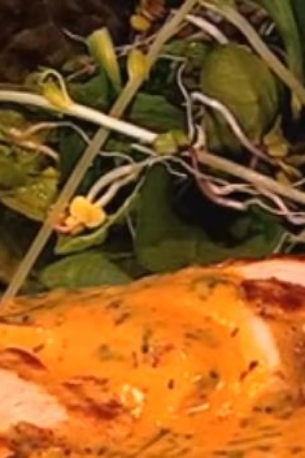 Snijd de gegrilde kip in plakjes en serveer met een frisse salade en choronsaus.