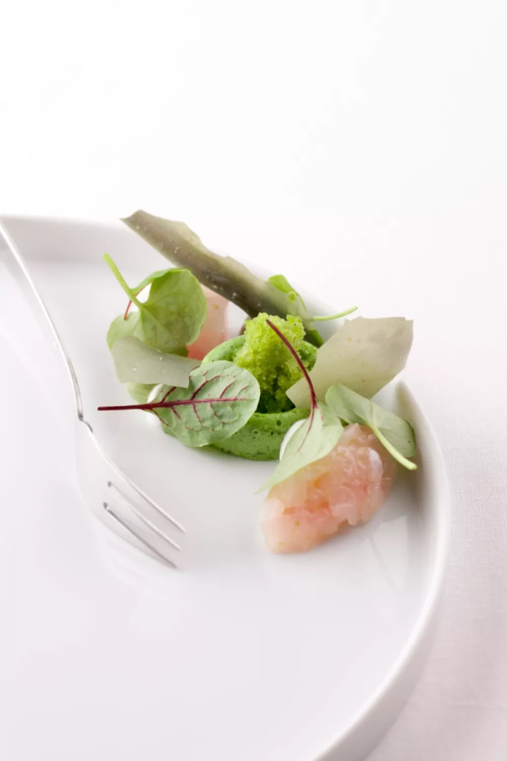 Gemarineerde zeebaars met zuring, spinazie en limoen brengt een frisse, lichtzure smaak en een verfijnde uitstraling, ideaal voor lente en zomer. De bereiding combineert marineren van de vis met gezeefde sappen van appel en kruiden, een romige mousse van avocado en appel en een luchtige limoencrème die kort in de diepvries wordt gezet. Serveer als elegant koud voorgerecht bij een droge blanc de blancs.