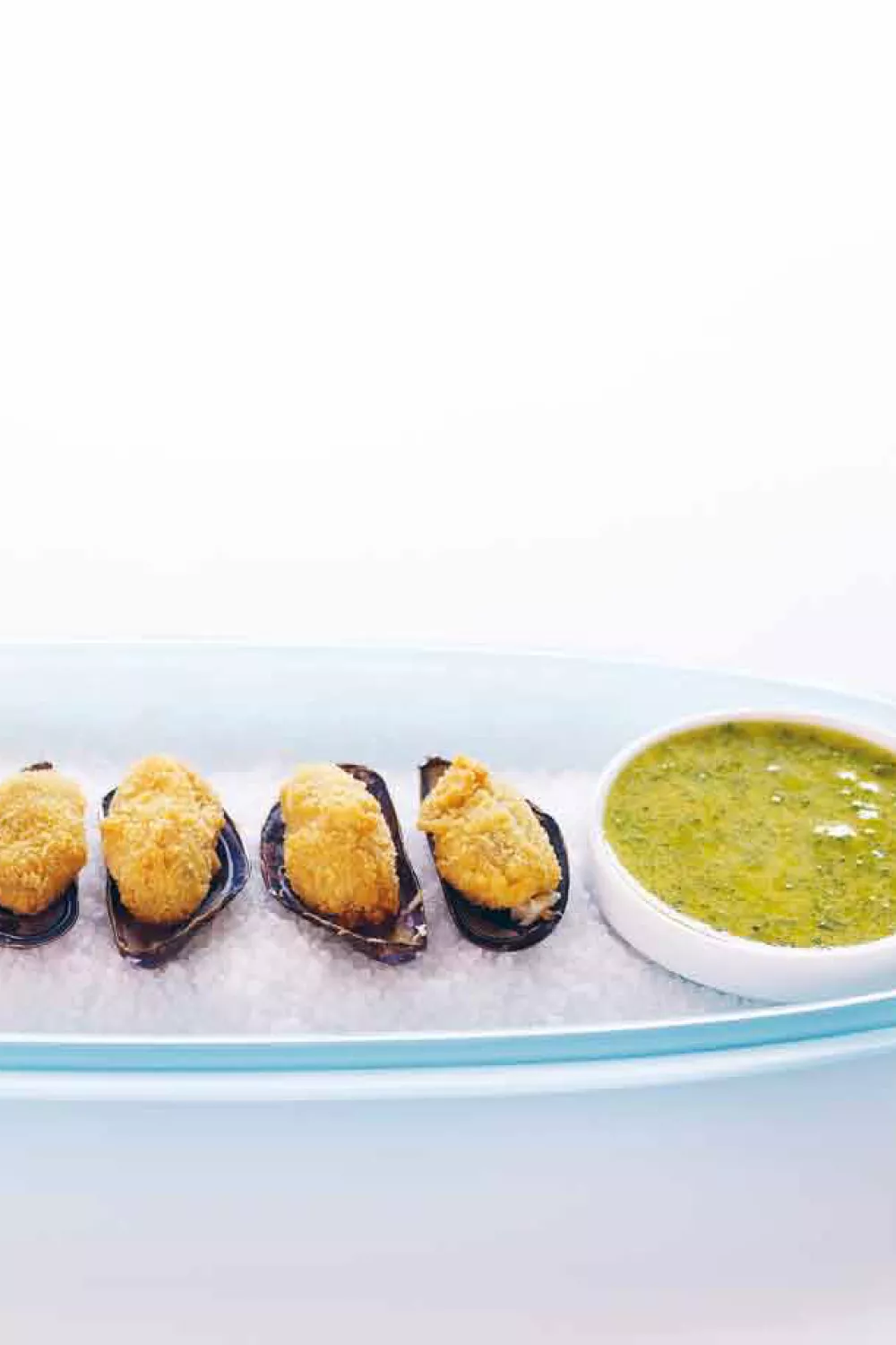 Stappenplan om recept “Gepaneerde mosseltjes met frisse vinaigrette” te bereiden