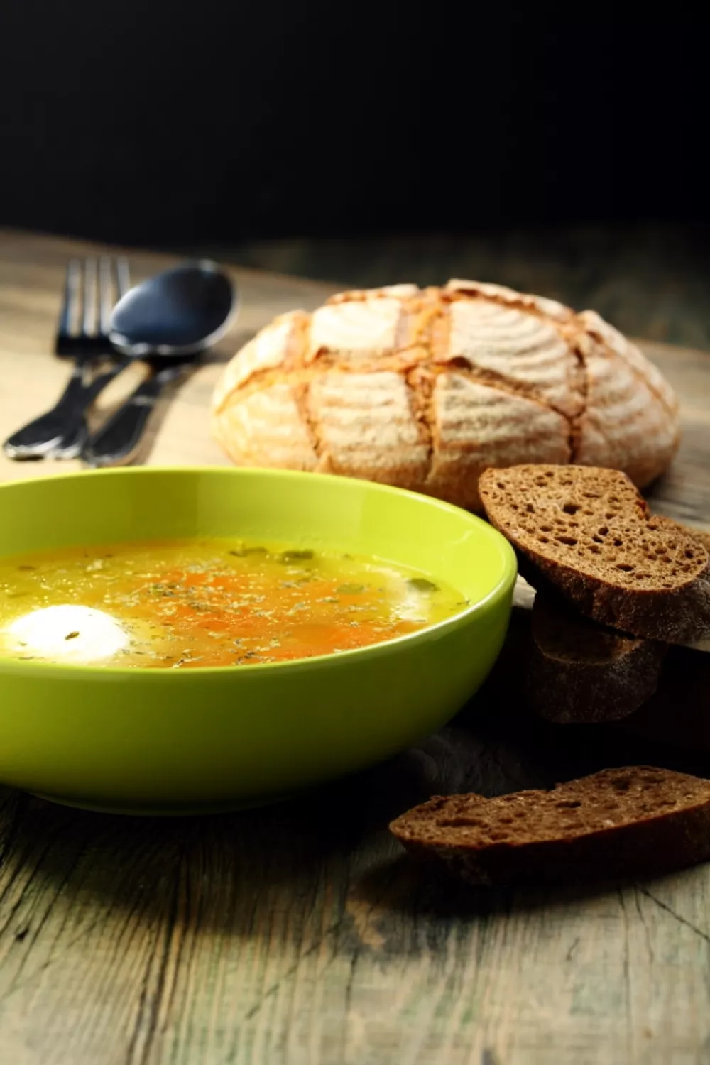 Een luxueus maar eenvoudig gerecht van gepocheerd ei met aromatische bouillon van hooi, krokant spek en knapperige croutons. De kippenbouillon trekt in een French Press twintig minuten met gedroogd hooi voor een rokerig en licht zoet aroma, waarna de eieren bij 80 graden gepocheerd worden en spek en brood goudbruin gebakken. Perfect als verfijnd ontbijt, warme lunch of herfstig voorgerecht voor gasten.