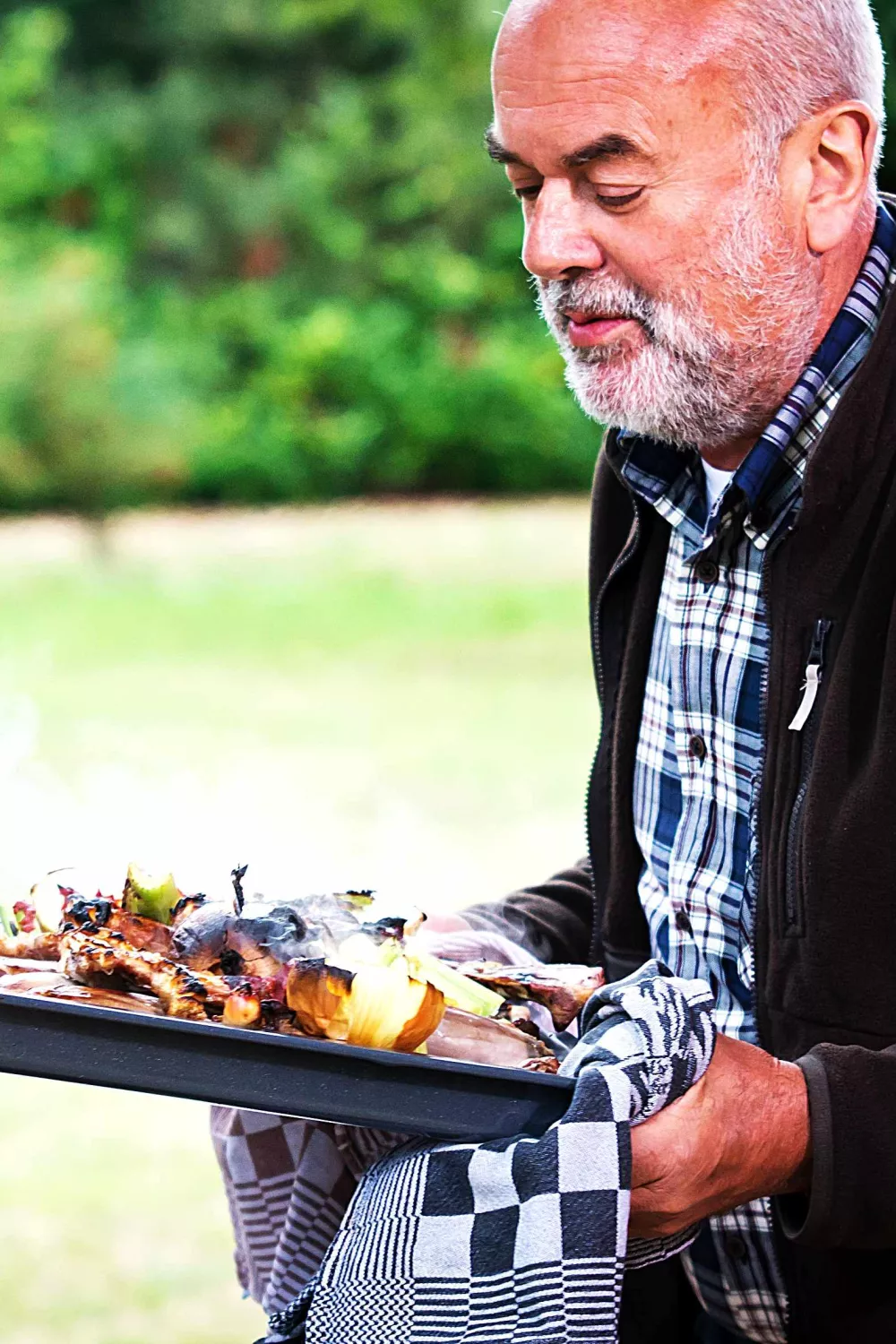 Rustieke verfijning en krachtige smaken verenigen zich in deze geroosterde bosduif met romige kruidenbéarnaise, gegrilde portobello's, rijpe tomaten en krokant ontbijtspek. De borstjes worden kort gegrild voor mooie grillstrepen, de billen zacht gestoofd en de pont neuf frieten krokant gefrituurd in twee beurten, voor textuur en diepte. Perfect als feestelijk herfst of wintergerecht bij een glas stevige rode wijn.