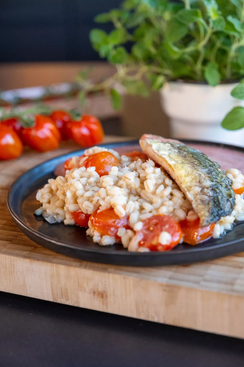 Gerstrisotto met tomaat en makreel