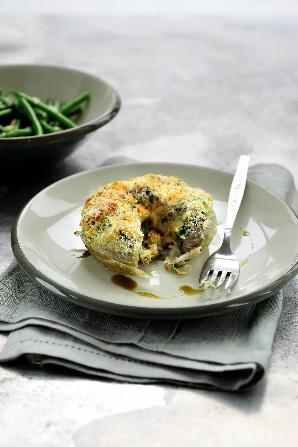 Gevulde artisjokbodems met roquefort en pompoenpitten