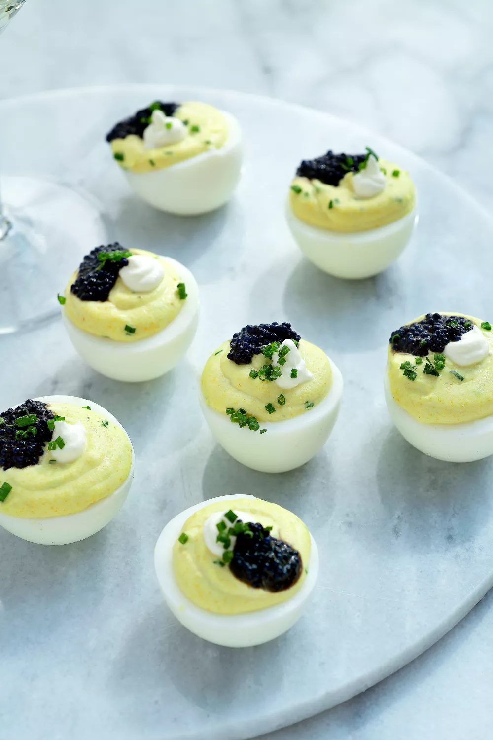 Gevulde eitjes met haringkaviaar