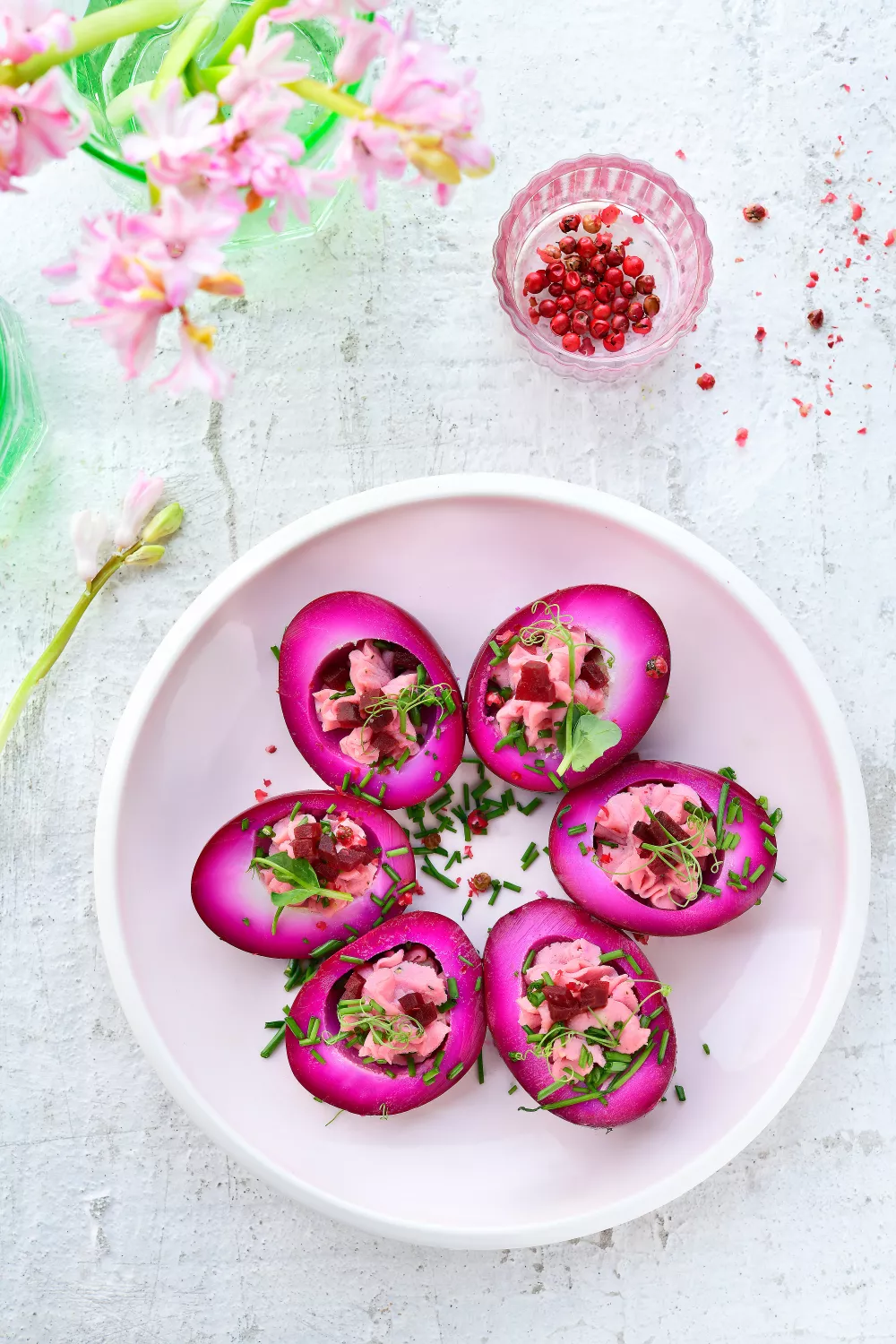 Stappenplan om recept “Gevulde eitjes met rode biet en bieslook” te bereiden