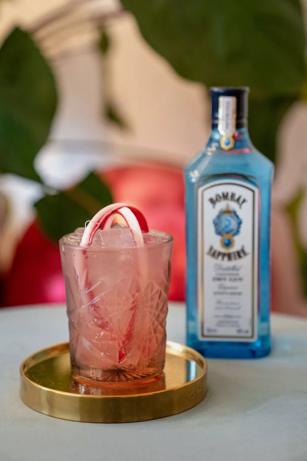 Een frisse, fruitige gin cocktail met Bombay Sapphire, orgeat en sprankelende rabarber framboos tonic, ideaal als zomers aperitief. Limoensap en ijsblokjes zorgen voor een frisse citrusbalans terwijl de amandelsiroop voor zachte rondheid zorgt. Schenk in een tumbler, roer kort om te mengen en werk af met een rabarberreepje voor een feestelijke borrel- of picknickdrank.