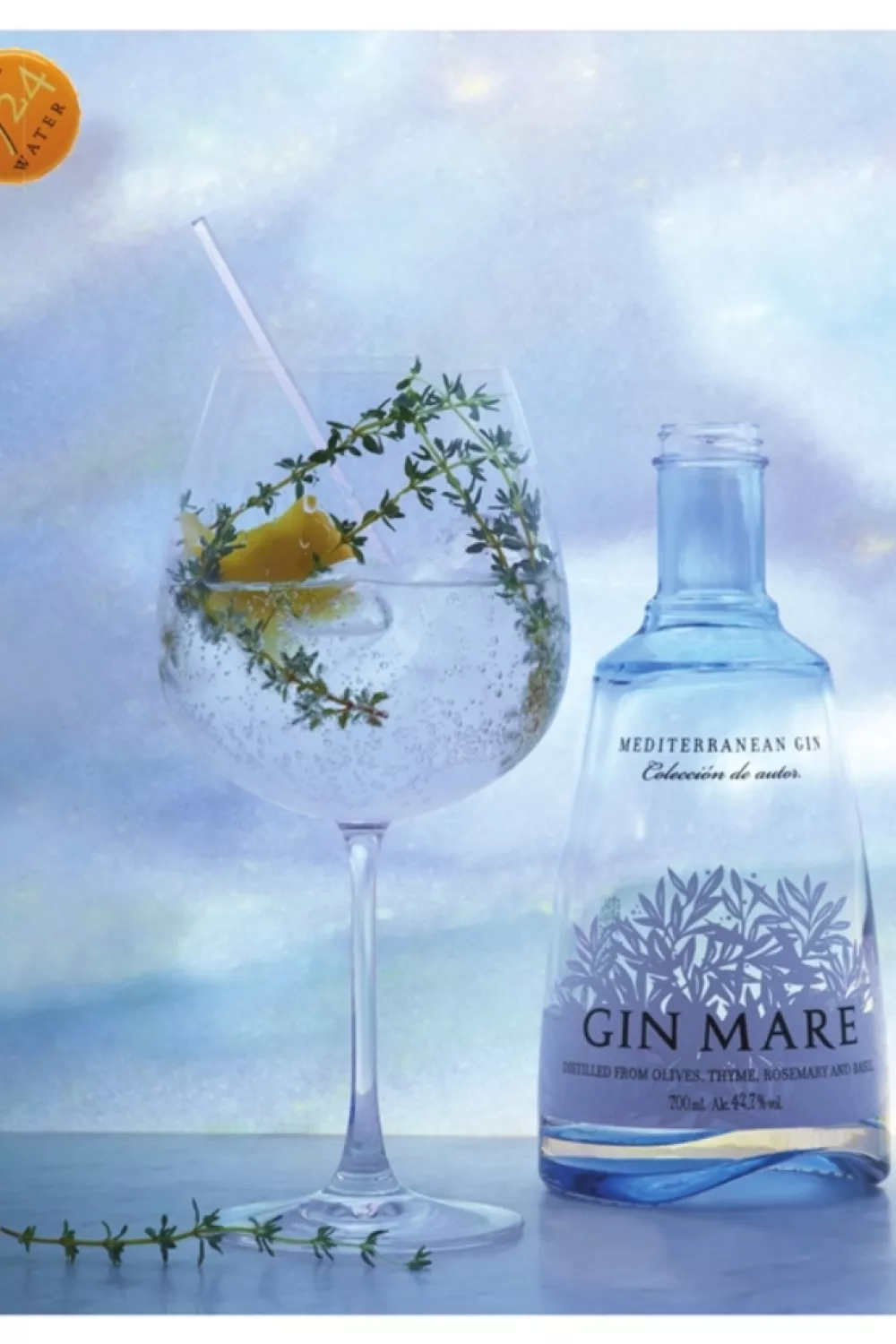 Doe 5 cl gin mare in het glas, garneer met een takje tijm en de zeste van een citroen.