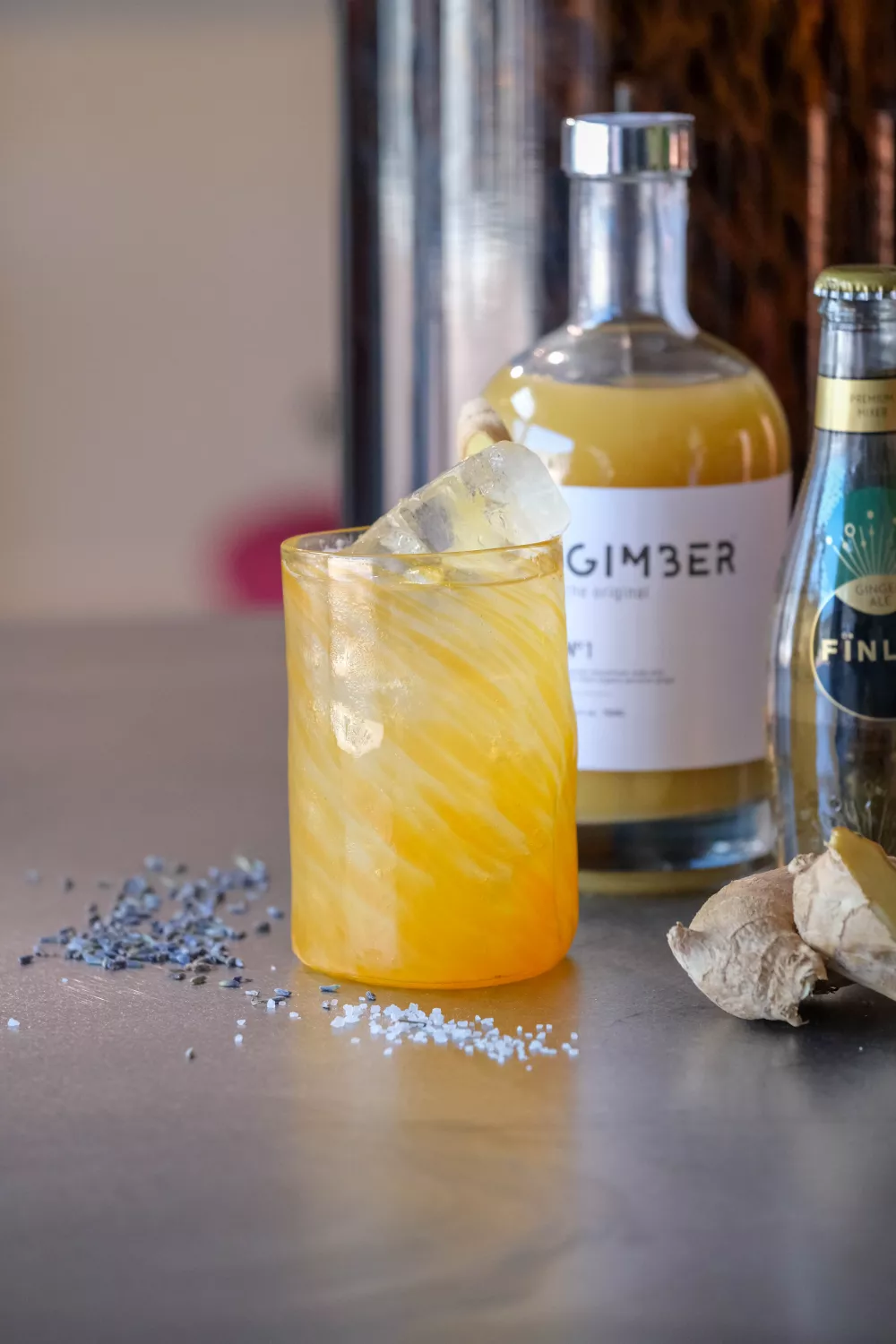 Een verfrissende alcoholvrije mocktail met warme honingtonen, subtiele lavendel en een verkwikkende gemberkick. De siroop van honing en lavendel wordt zachtjes verwarmd en een nachtje getrokken, waarna Gimber en vers citroensap kort worden geschud en de mix wordt afgewerkt met ginger ale. Perfect als zomers aperitief of als feestelijk alcoholvrij alternatief bij een borrel.