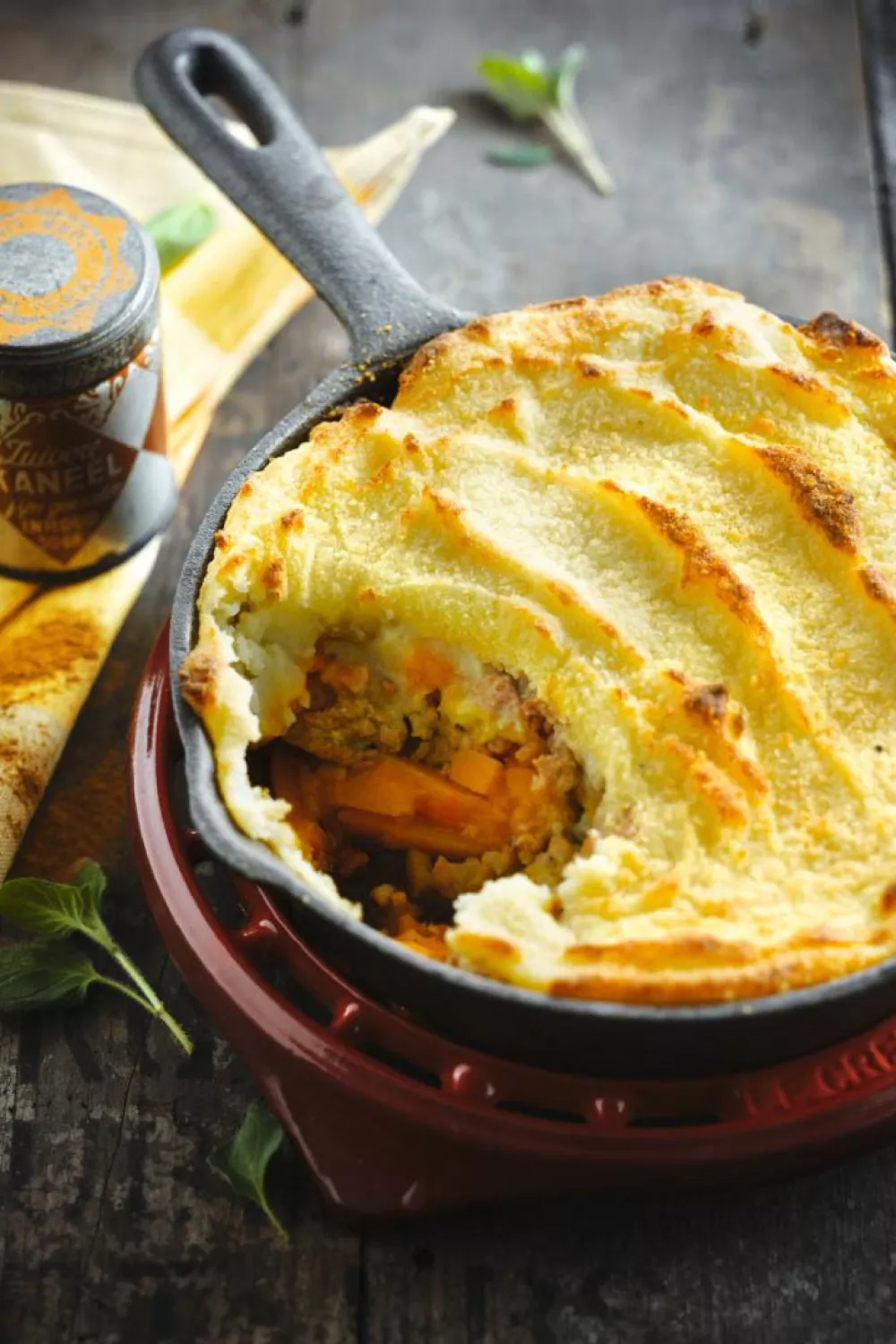 Deze hartige ovenschotel combineert zoete pompoen met kruidig gehakt en romige aardappelpuree tot een troostrijk herfstgerecht. Met tijm, oregano, paprikapoeder en een vleugje kaneel krijgt het gehakt extra warmte nadat het kort is aangebakken en lichtjes gebonden. Laagjes van pompoen, vleesmengsel en puree worden in de oven goudbruin gratineerd voor een gezellige maaltijd bij doordeweekse diners of weekendmaaltijden.