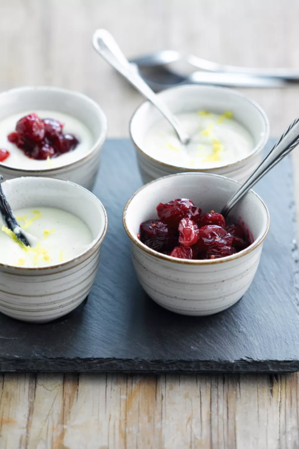 Serveer met de veenbessencompote.