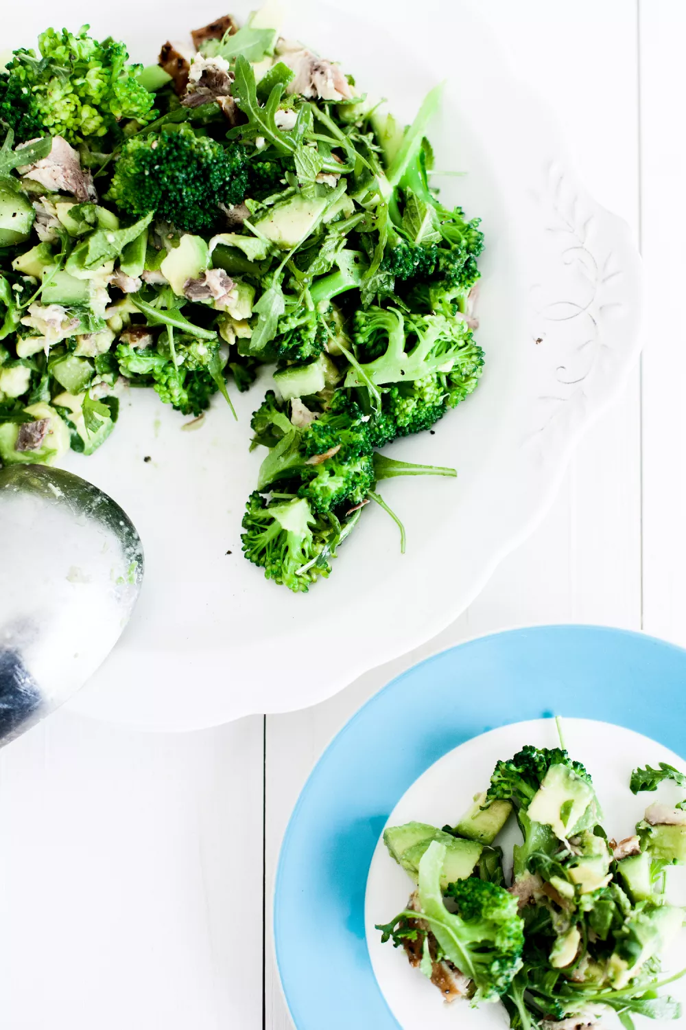Een frisse groene antioxidantensalade met romige avocado en lichtgerookte makreel, ideaal als lichte lunch of zomers voorgerecht. Het blancheren van broccoli geeft beet en knapperigheid, terwijl komkommer en munt frisse tonen toevoegen en limoen alles opfrist. Meng met raketsla, een scheut olie en breng op smaak met zout en peper voor een snelle, gezonde maaltijd boordevol textuur en smaak.