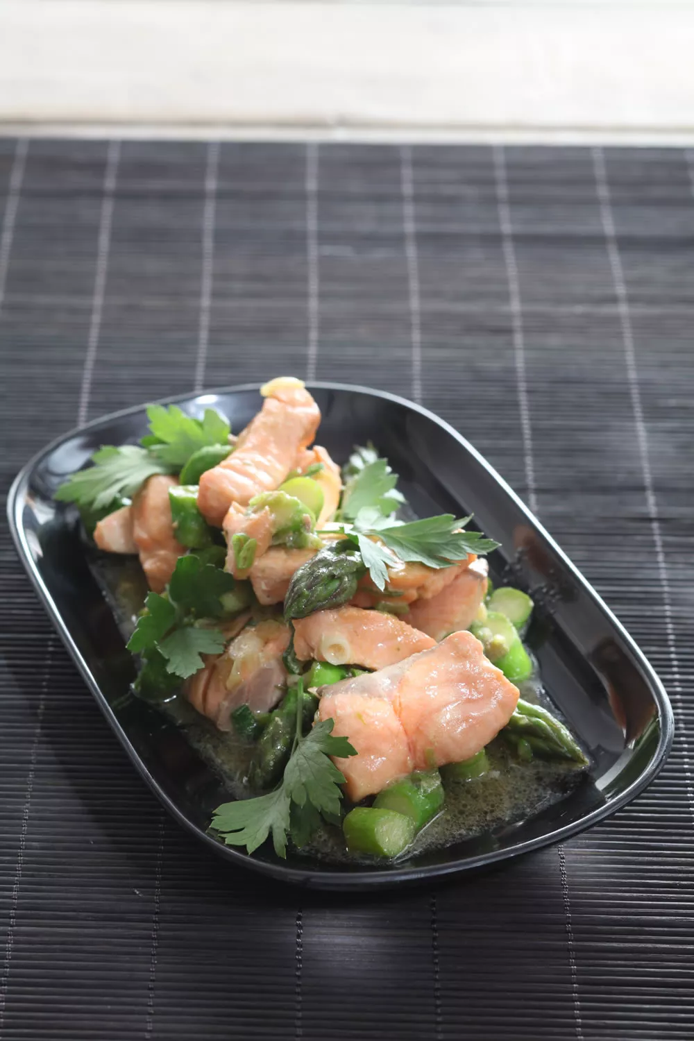 Stappenplan om recept “Groene asperges met gewokte zalm” te bereiden