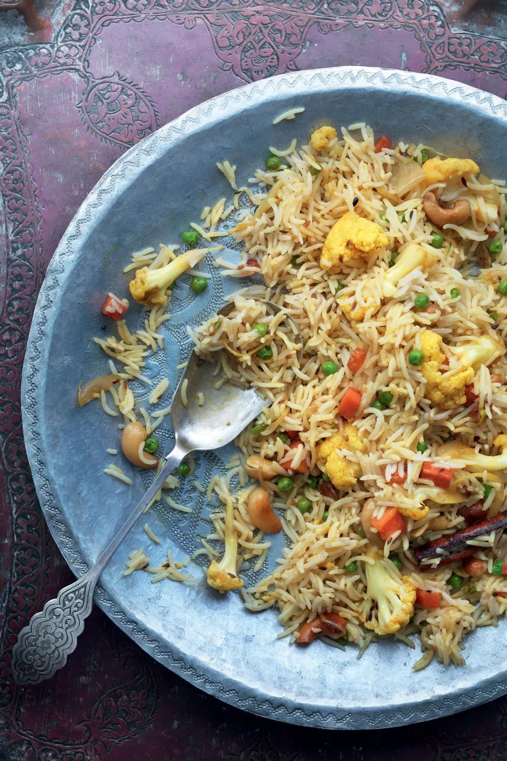 Groentebiryani met bloemkool, wortel en doperwten