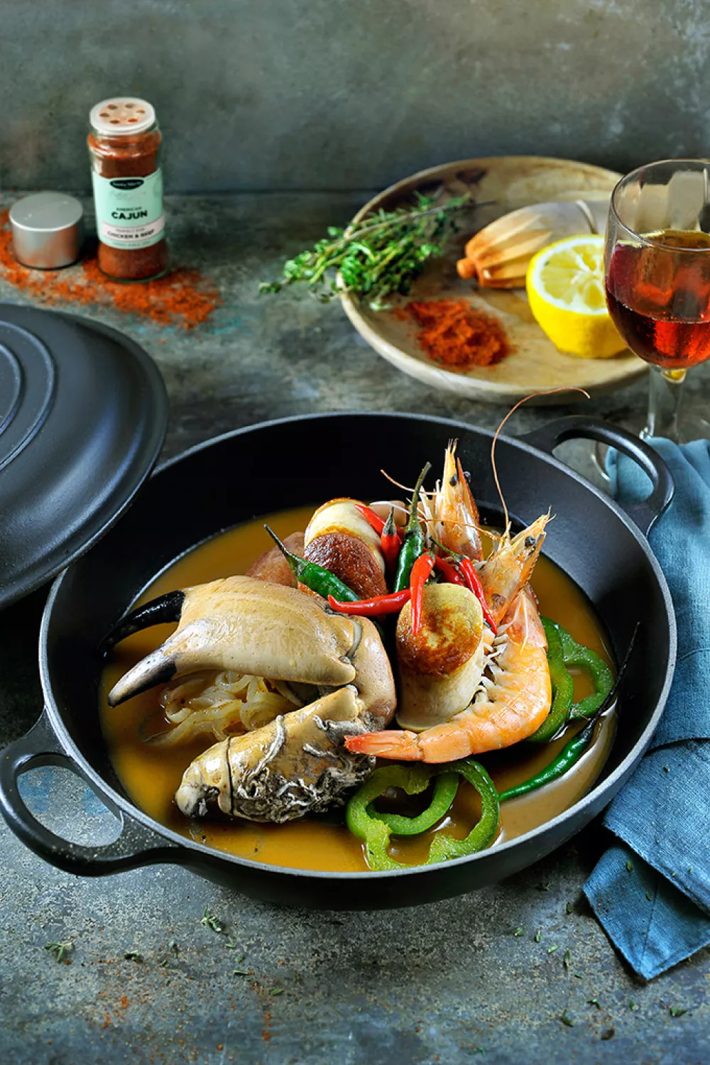 Stappenplan om recept “Gumbo met reuzengarnalen, krab en witte pens” te bereiden