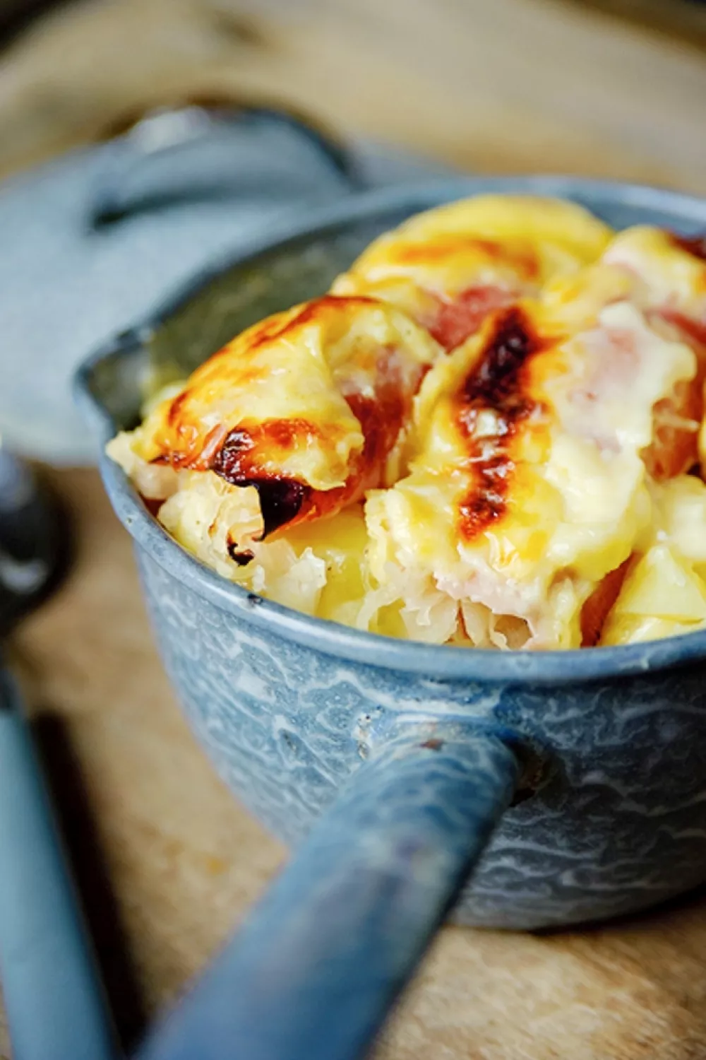 Zin in een hartverwarmende ovenschotel voor de koude maanden? Hamrolletjes gevuld met zuurkool en gebakken blokjes zoete appel rusten op vastkokende aardappelen en worden overgoten met een romige bechamelsaus met jonge kaas. Ideaal voor een doordeweekse avond of een gezellige familietafel, met knus comfort en een frisse winterse twist.