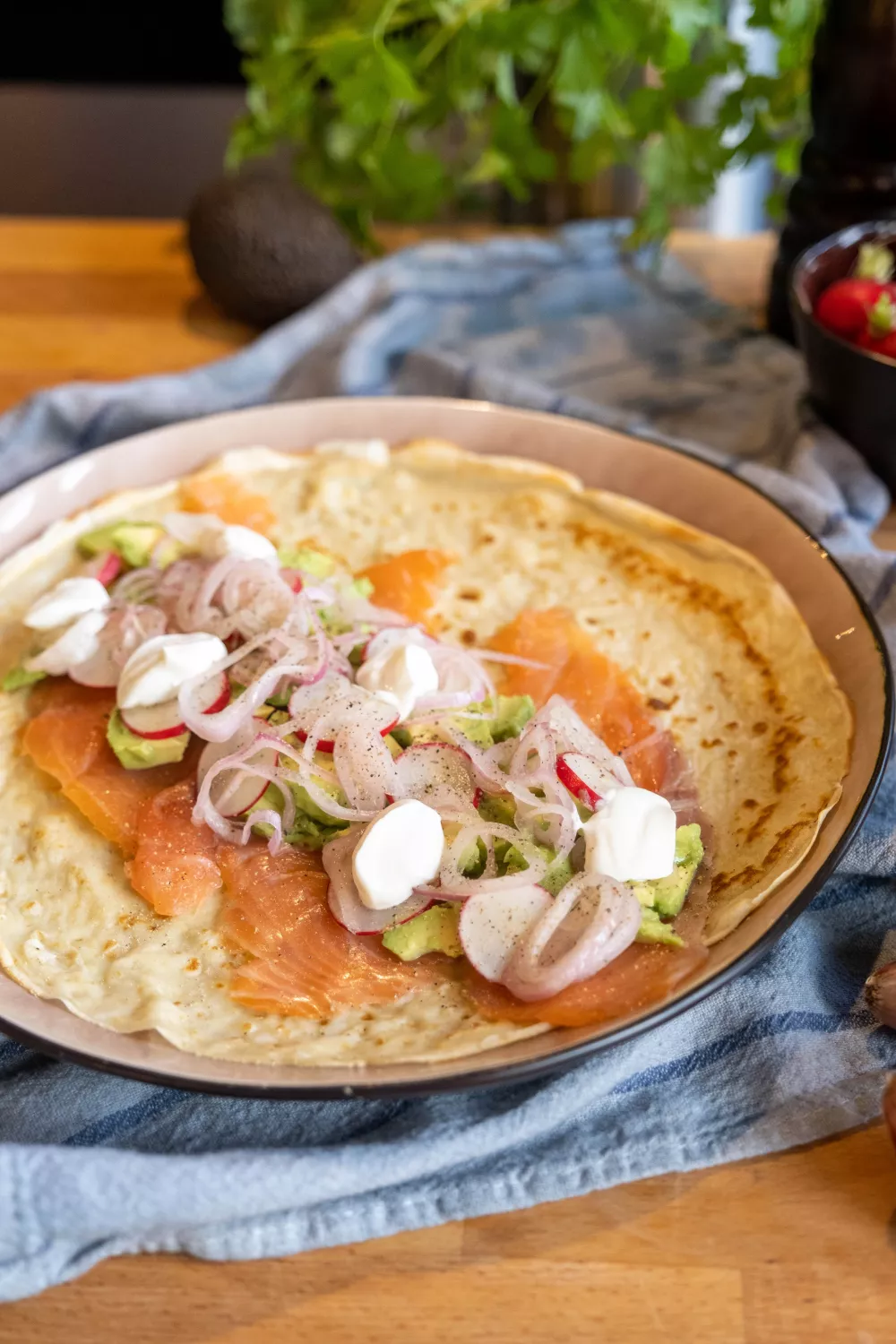 Stappenplan om recept “Hartige pannenkoek met zalm en avocado” te bereiden