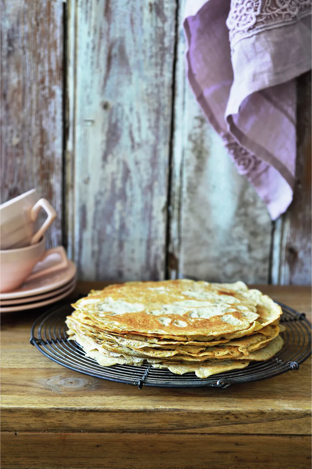 Luchtige havercrêpes met een nootachtige smaak en zachte zoetheid van ahornsiroop zijn een ideaal ontbijtgerecht voor een rustige ochtend of gezellige brunch. Het beslag van havervlokken, plantaardige melk en eieren wordt in de blender kort gemengd voor een fluweelzachte textuur en vervolgens in een warme pannenkoekenpan in kokosolie goudbruin gebakken. Snel, voedzaam en geschikt voor elk seizoen, perfect met vers fruit of yoghurt.