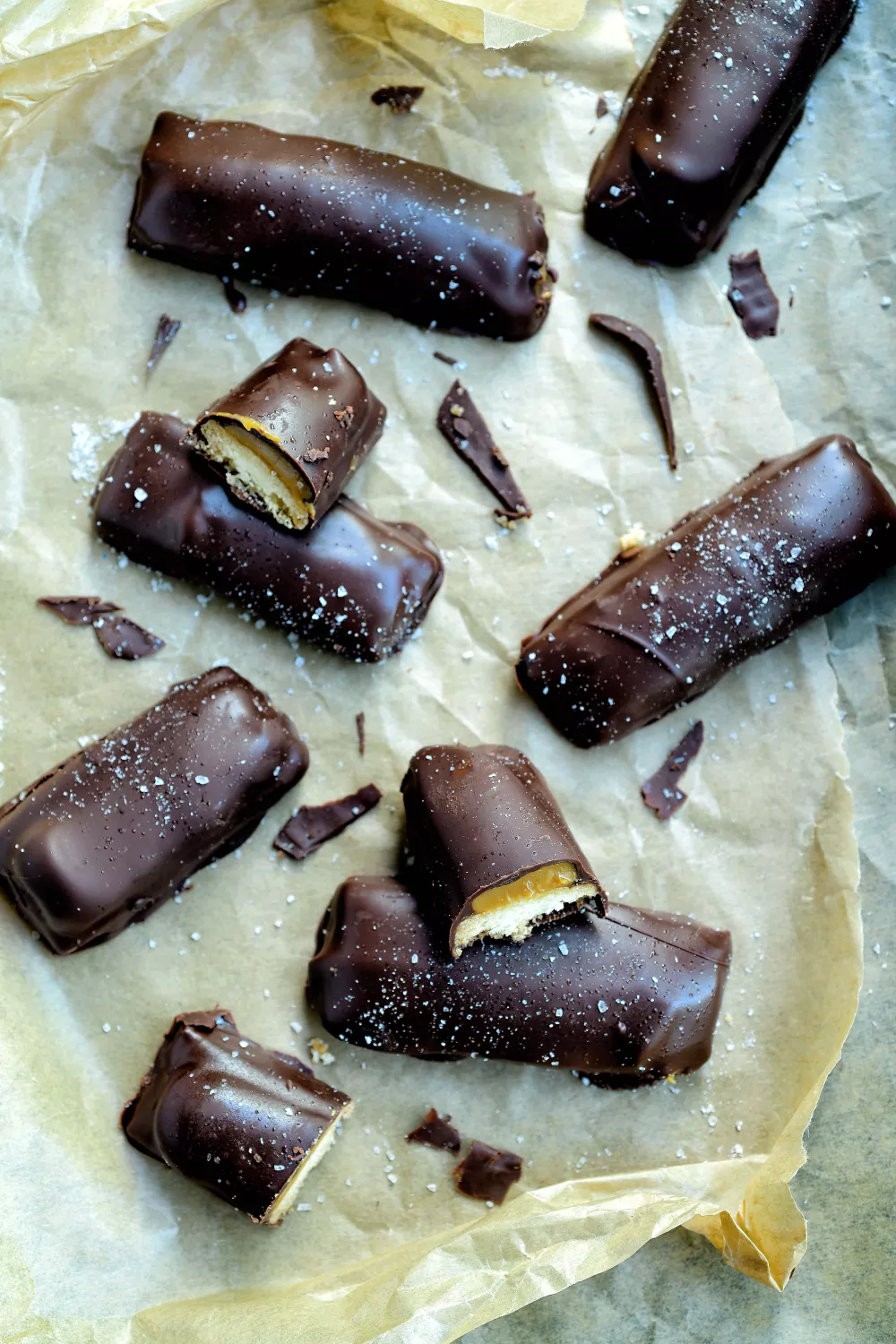 Zelfgemaakte Twix met romige dulce de leche en pure chocolade, krokant shortbread en een snufje fleur de sel, ideaal als traktatie bij koffie of voor een feestje. Het recept maakt karamel door een blik gecondenseerde melk langzaam te koken, combineert een snel deeg van bloem, koude boter en vanille en werkt af met een warm chocoladebadje. Simpel genoeg om thuis te bakken, feestelijk genoeg om cadeau te geven.