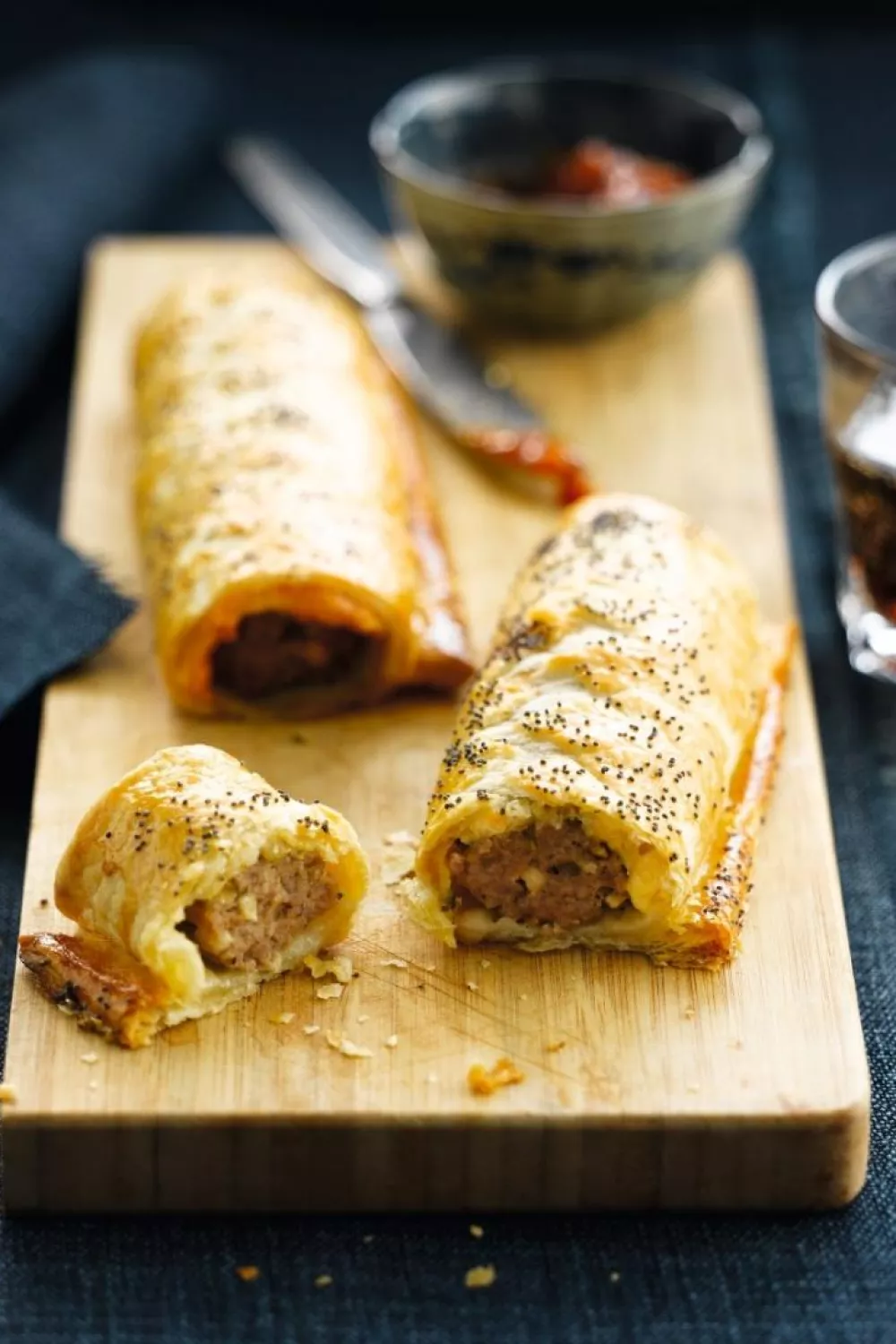 Deze worstenbroodjes van bladerdeeg combineren smeuïg varkens en rundgehakt met stukjes appel en fijngehakte champignons voor een verrassende zoet en hartige smaak. Ze worden opgerold met een plakje kaas en mosterd, met ei bestreken en afgewerkt met sesam en maanzaad voor een goudbruin knapperig korstje uit de oven. Perfect als warm hartig hapje bij de borrel, als stevige lunch of voor een picknick in elk seizoen.