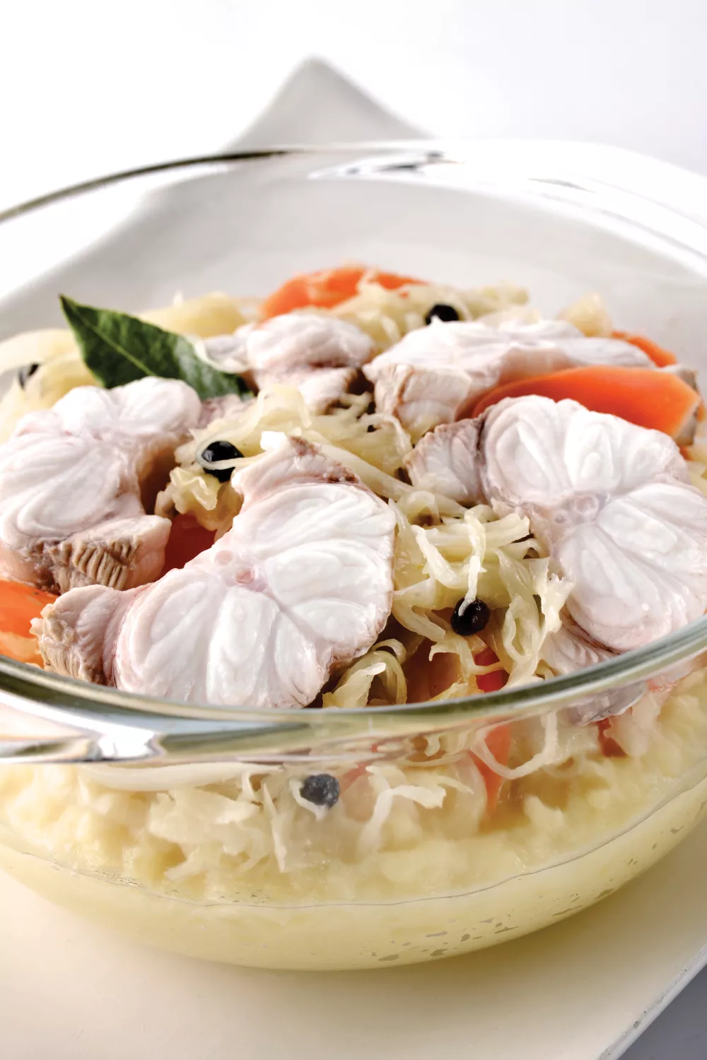 Stappenplan om recept “Hondshaai met zuurkool” te bereiden