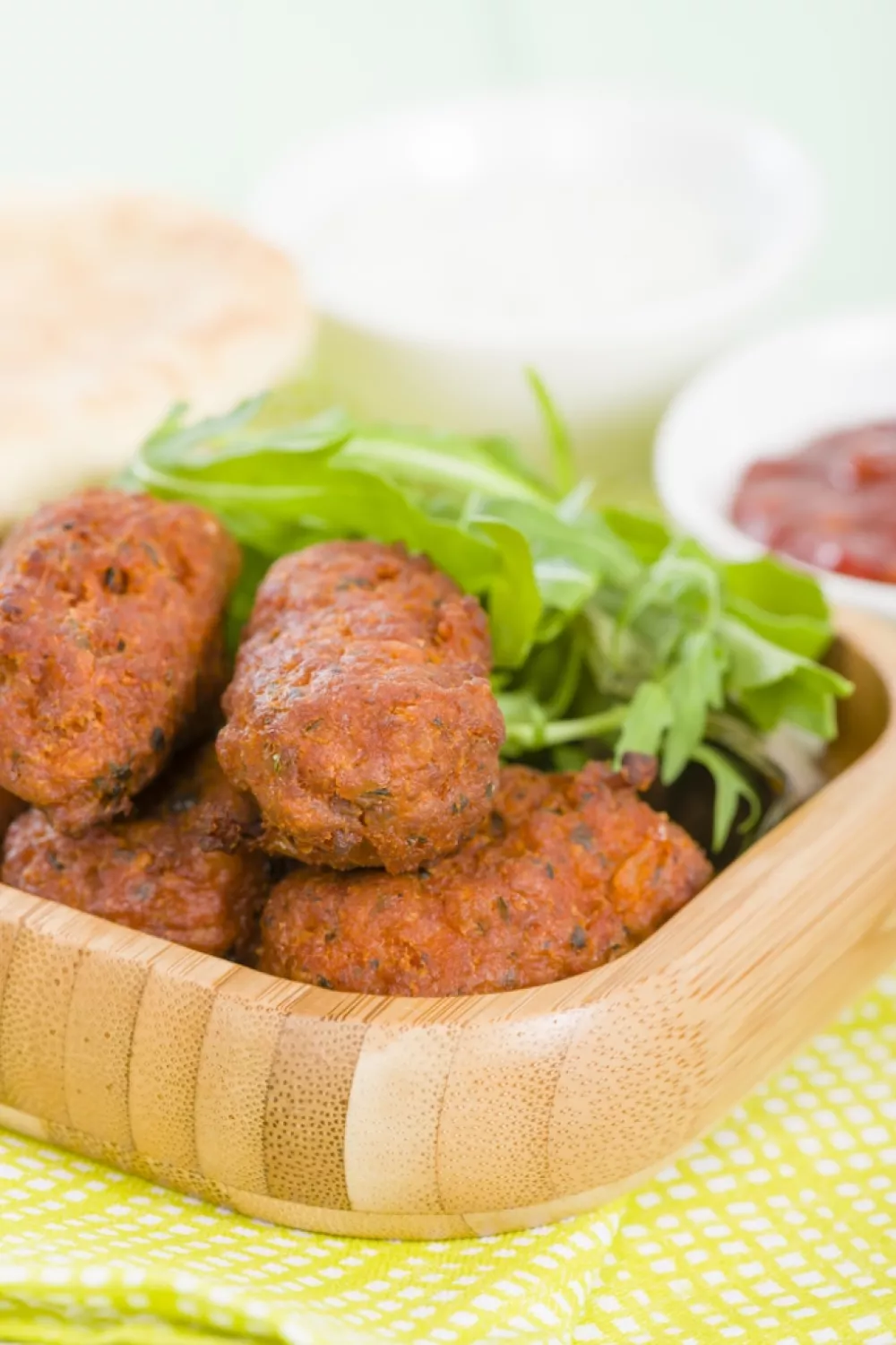 Serveer het gevulde lamsgehakt met de yoghurtdressing.