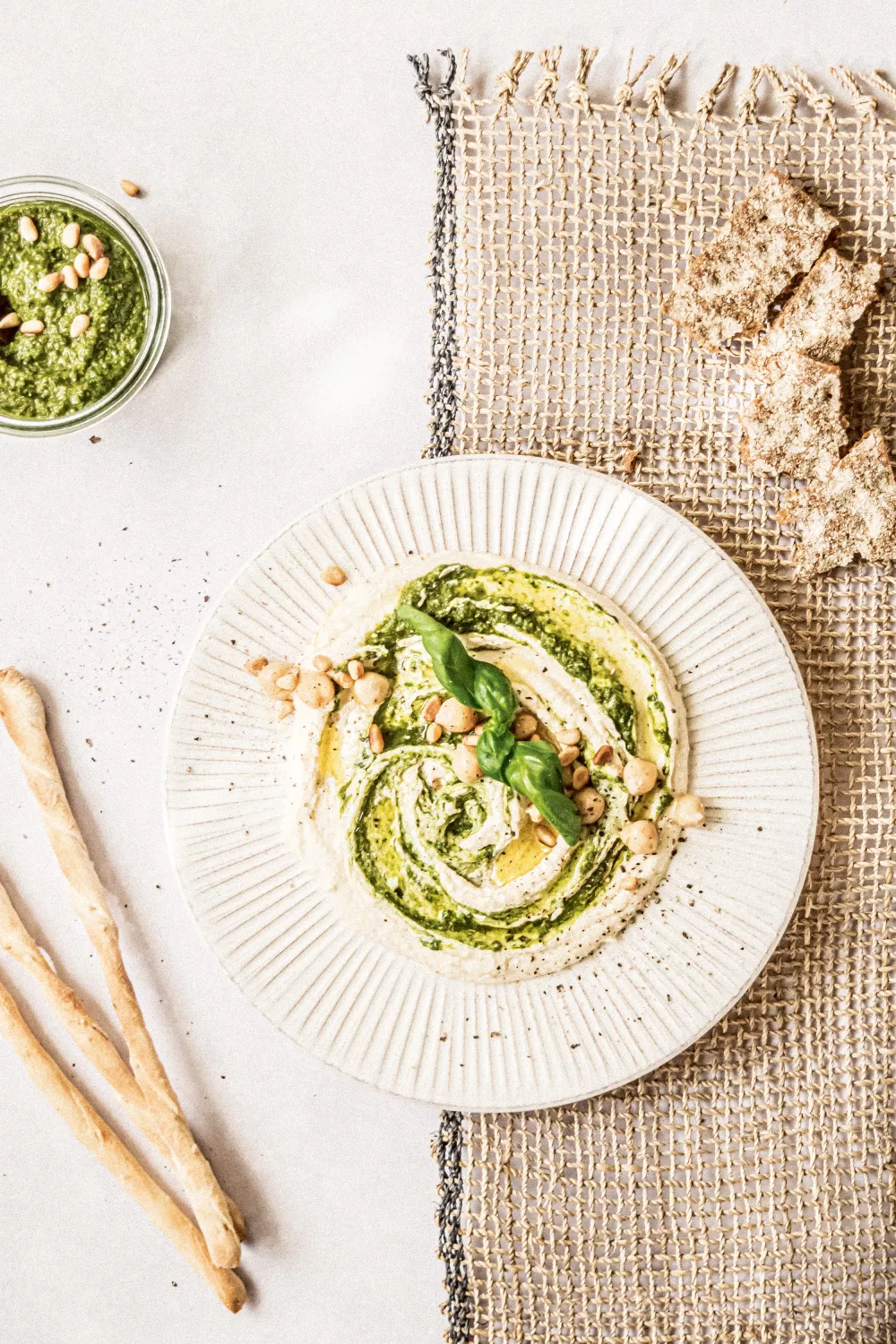 Hummus met basilicumpesto