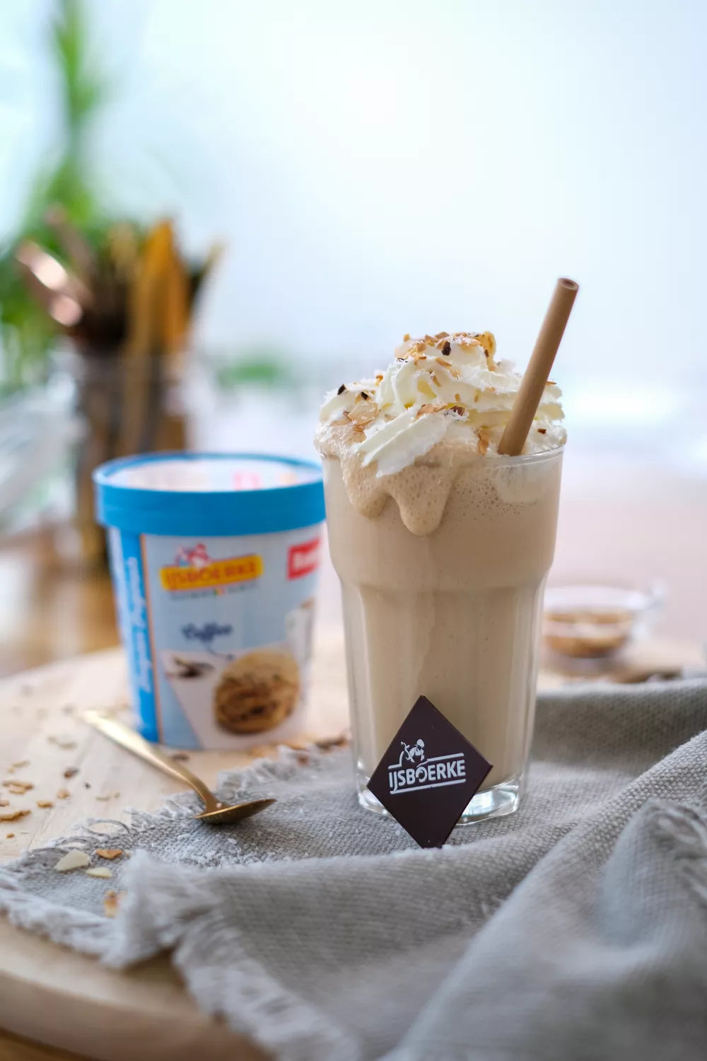 Romige ijskoffie met kokos combineert koude koffie, romige kokosmelk en bolletjes koffie roomijs tot een tropisch en verfrissend drankje. In de blender maak je in enkele minuten een gladde, ijskoude shake die ideaal is voor warme zomerdagen, een ontspannen brunch of als koffiedessert. Werk af met slagroom en knapperige amandelschilfers en kokosschilfers voor extra textuur en smaak.