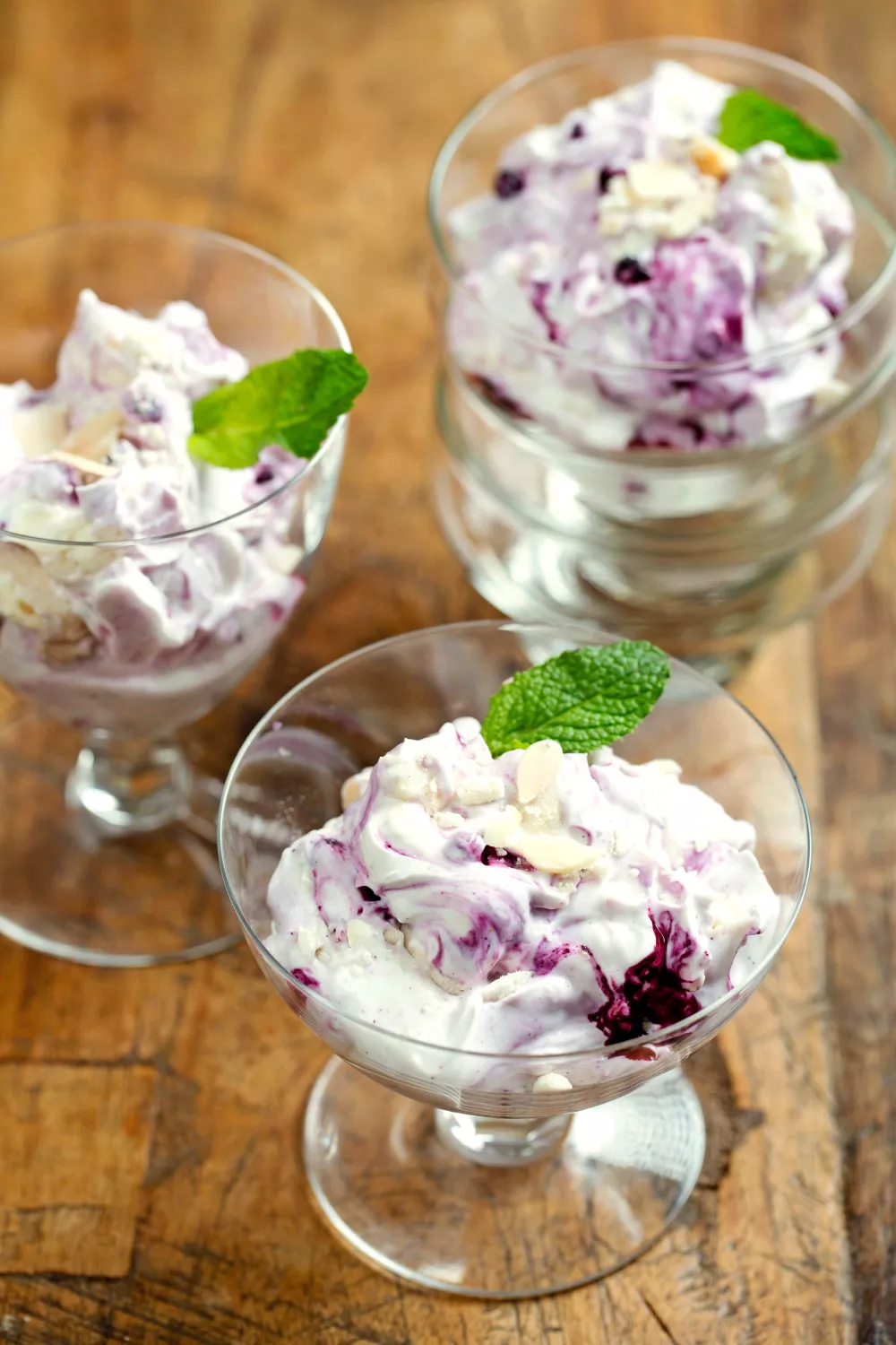Luchtig romig dessert geïnspireerd op IJslandse skyr, gemaakt van mascarpone en volle Griekse yoghurt met het zoete van vanille en de knapperige textuur van verkruimelde meringue. Zure rode vruchten uit de diepvries geven een frisse, fruitige toets en zorgen voor kleur en sappigheid. Dit snelle toetje zonder bakken is perfect voor zomerse dagen, brunches of als elegant nagerecht en wordt feestelijk geserveerd in glaasjes met een takje munt.