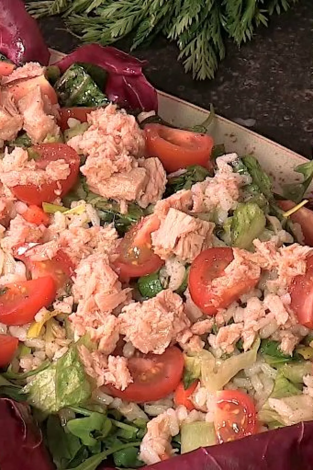 Deze Italiaanse rijstsalade met tonijn combineert romige risottorijst met knapperige selderij, prei, wortel en zoete kerstomaatjes voor een frisse mediterraanse lunch of lichte zomerse maaltijd. De rijst wordt gekookt, afgekoeld en gemengd met olijfolie en balsamico zodat de smaken goed intrekken, waarna radicchio en rucola zorgen voor extra bite en kleur. Perfect voor een picknick, snelle doordeweekse maaltijd of als bijgerecht bij de barbecue.