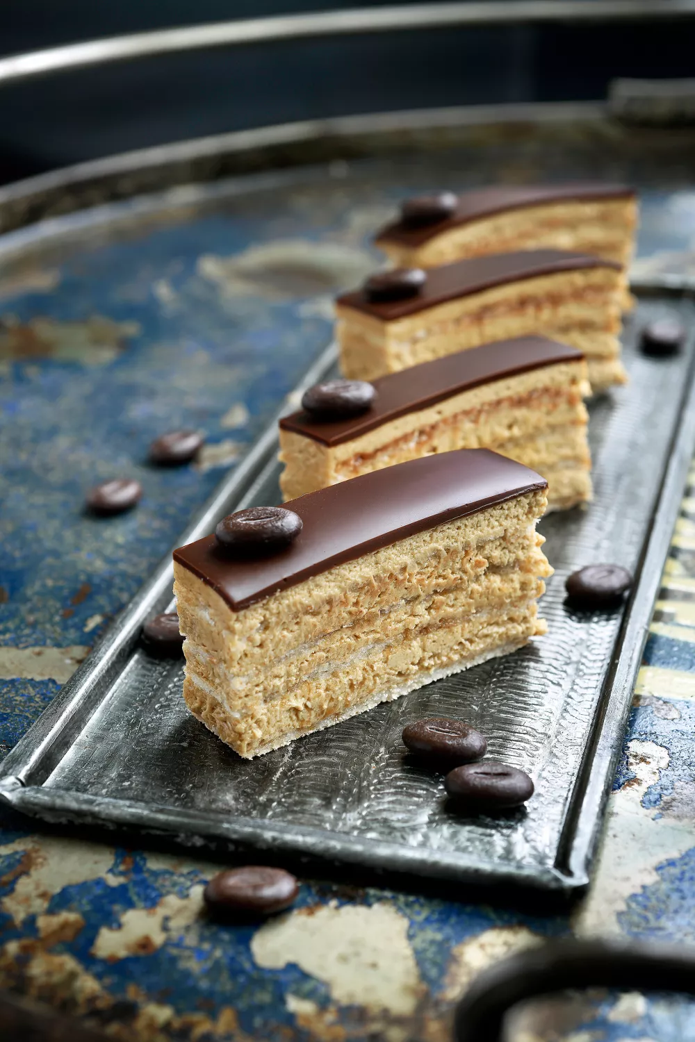 Javanais is een elegante patisserieklassieker met luchtige amandelbiscuit, een rijke koffiebotercrème op basis van eidooiers en zachte boter en een glanzende chocoladeganache. Het recept vraagt het bakken van dunne biscuitlagen, het insoppen met warme koffiesiroop en zorgvuldig opbouwen en koelen voor strakke, fijne plakjes. Perfect als feestelijk dessert, bij de koffie of als verwarmend wintergebak.