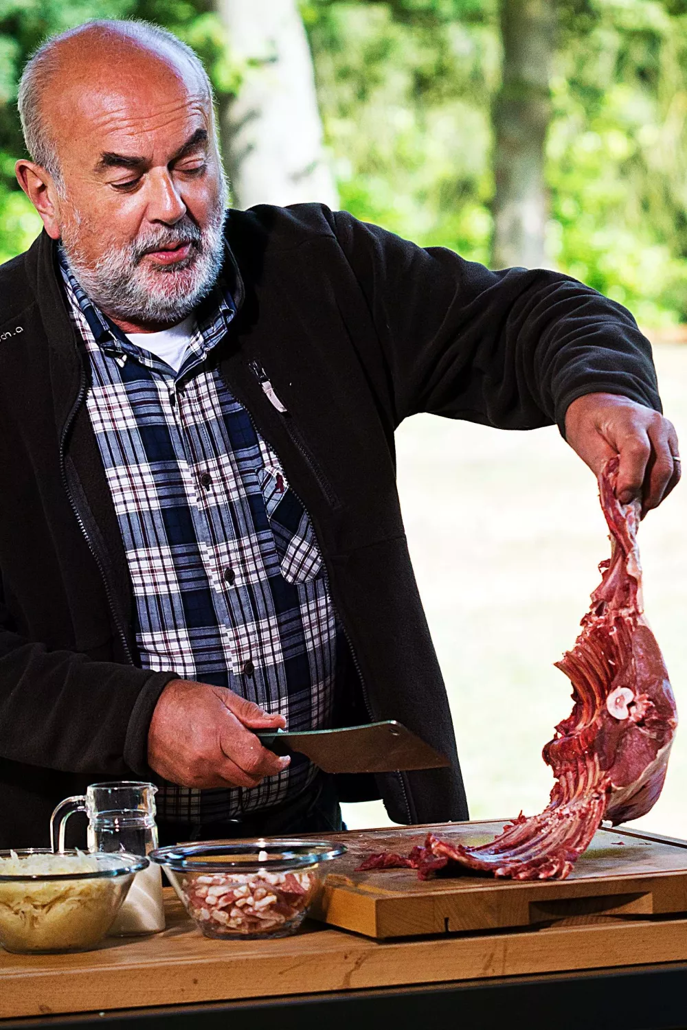 Dit feestelijke hoofdgerecht met jonge patrijzen uit de cocotte combineert knapperig aangebraden gevogelte met een romige champignonvulling in delicate courgettebloemen en een rijke foie gras paté. Gestoomde ratte aardappelen, kleine bieten en rapen geven een aardse tegenhanger, terwijl beuling en ingekookte braadjus zorgen voor diepe, hartige smaken. Perfect voor feestelijke diners in herfst en winter wanneer je wilt uitpakken met klassieke verfijnde technieken zoals aanbraden, stoven en sausreductie.