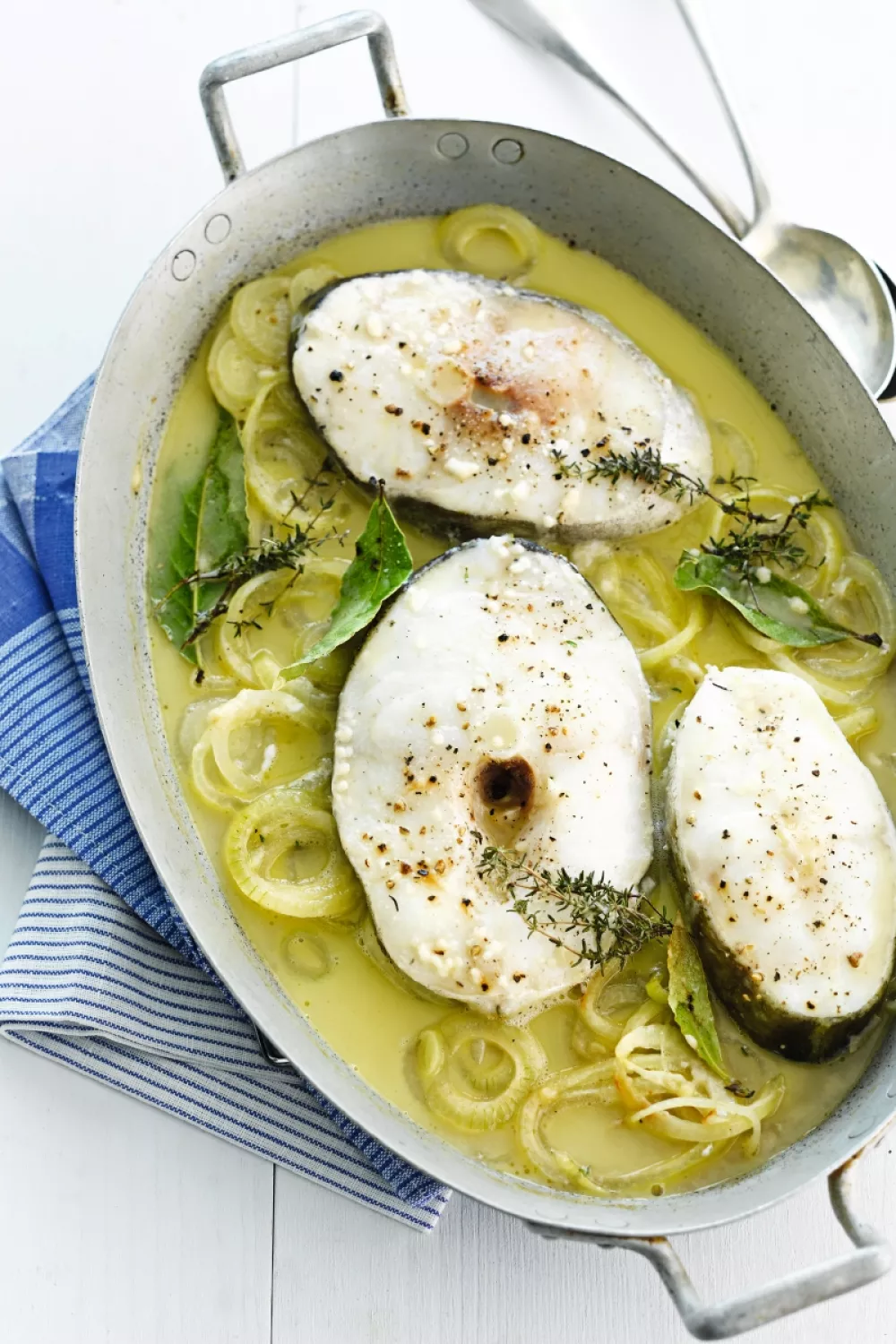 Zachte, gestoofde uien en een vleugje trappistenbier geven deze ovengebakken kabeljauw een diepe, hartige smaak die doet denken aan comfort food op gure avonden. De vis wordt licht gepocheerd in bier en visbouillon en afgewerkt met een boterige saus en krokant broodkruim. Serveer met gekookte aardappelen en een frisse dot tuinkers voor een gezellige weekendmaaltijd.