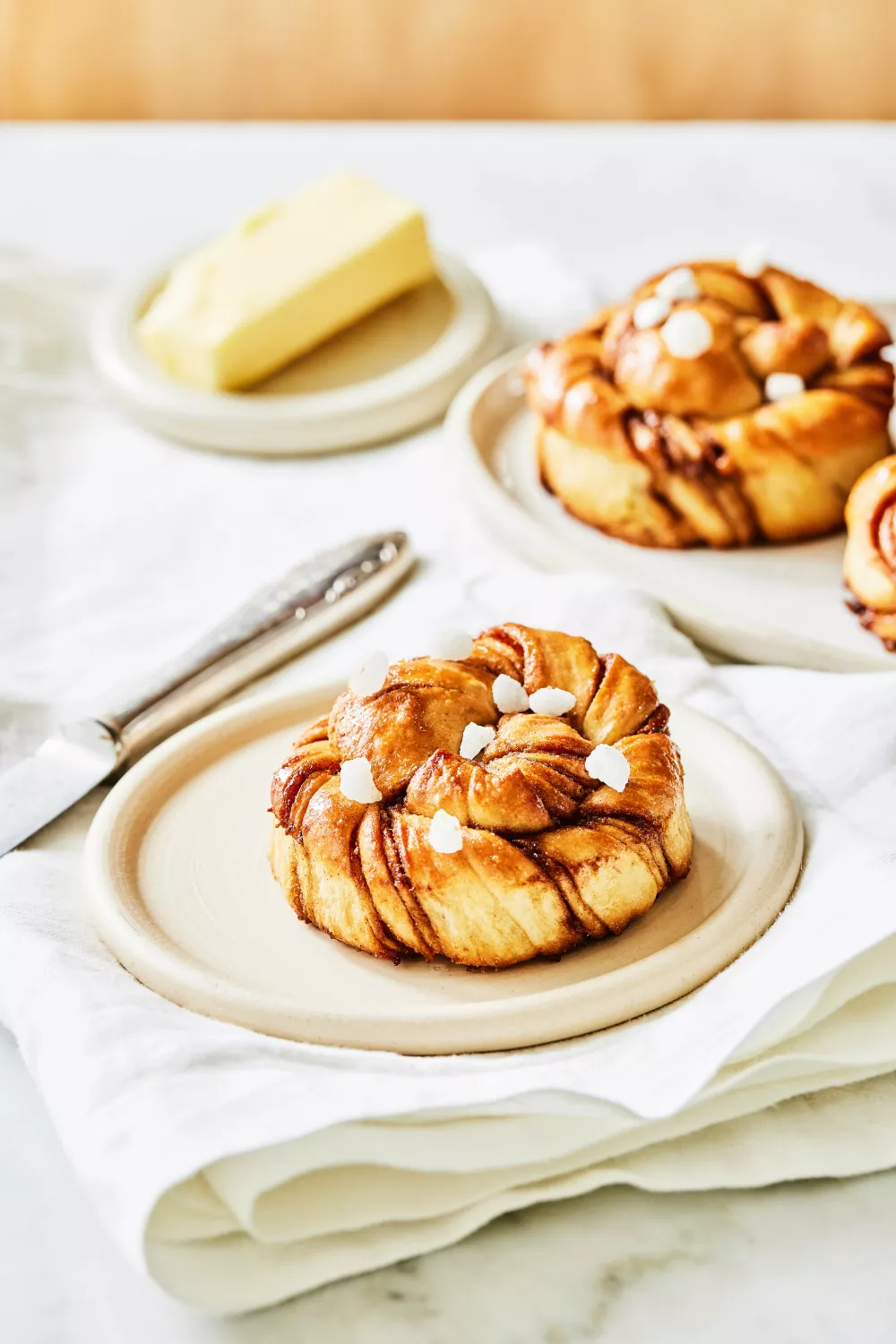 Lichtzoete, luchtige kardemomsnoeren met een boterige vulling van bruine suiker, sinaasappelzeste en een warme toets van kaneel en zwarte peper. Met een zijdezacht tangzhong deeg en een gedraaide vlecht ontstaat een feestelijke krans, ideaal voor brunch, winterse high tea of een gezellig ontbijt. De bereidingswijze is ambachtelijk maar toegankelijk: kneden, vullen, draaien en bakken voor een goudbruine, geurende lekkernij.