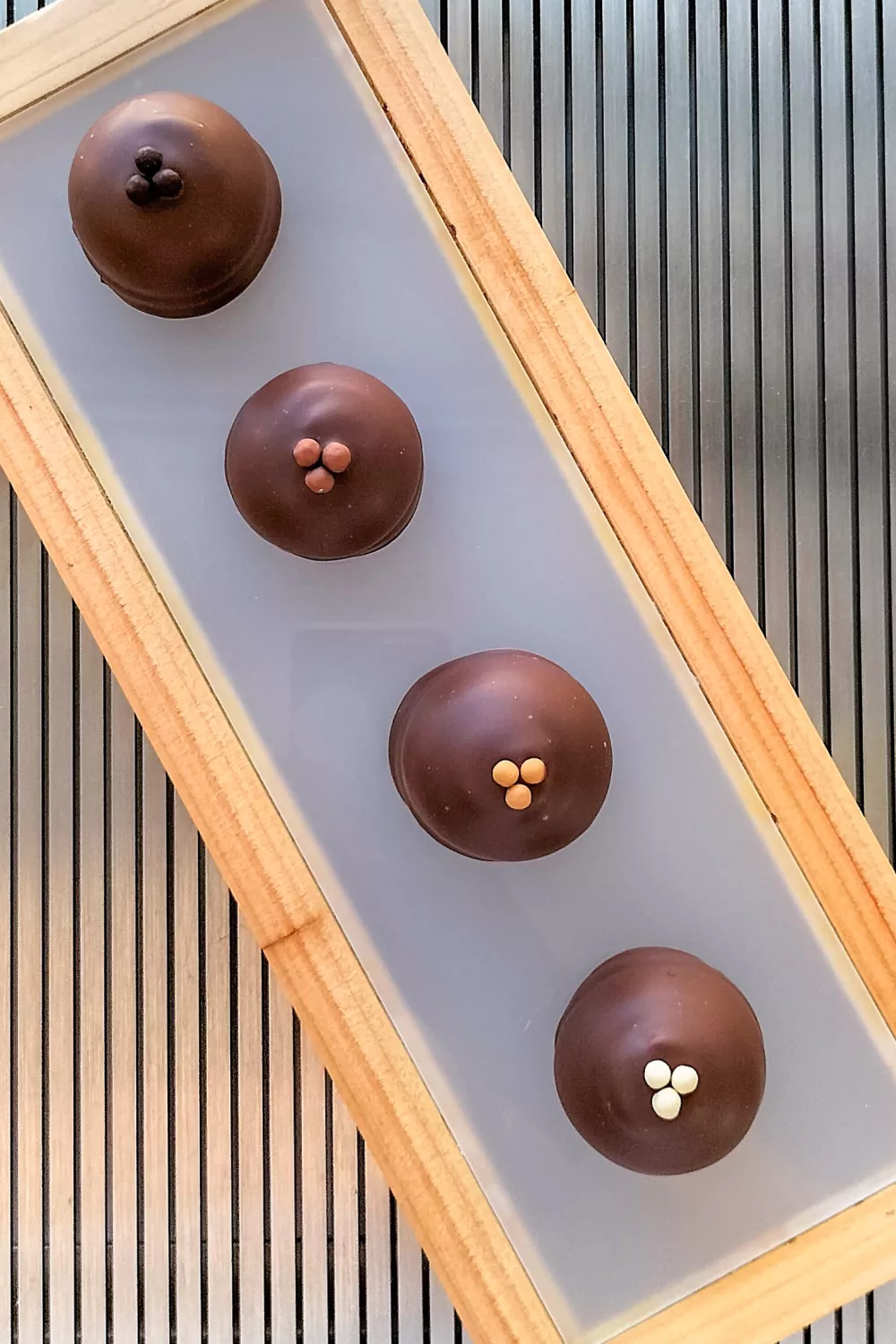 Werk af met chocoladeparels.