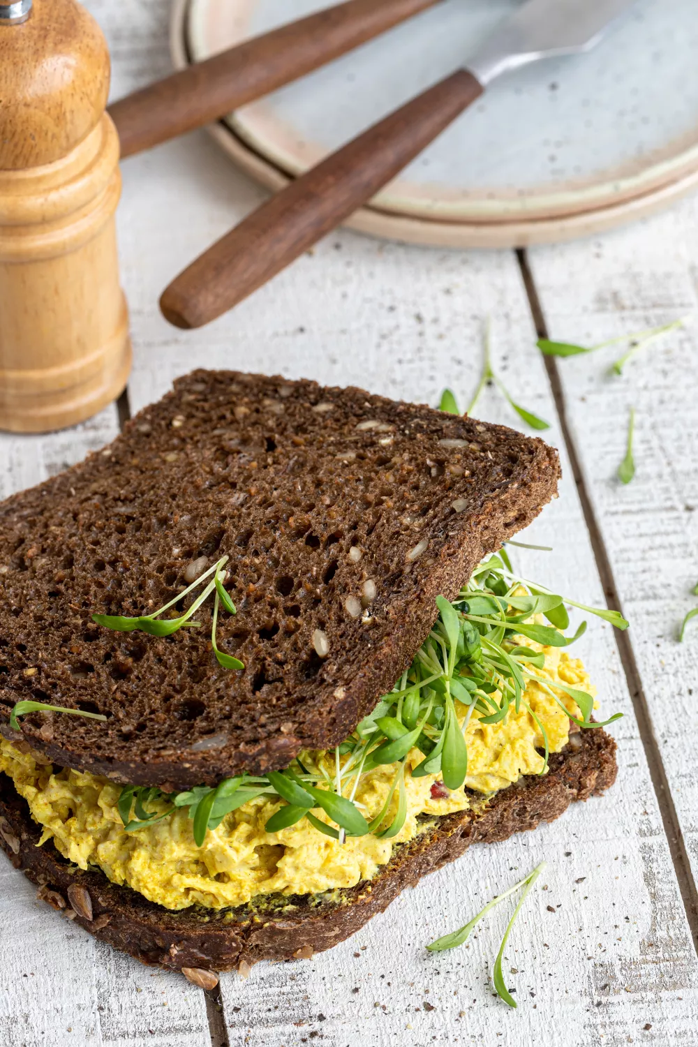 Deze frisse kipcurry salade combineert malse, in water gegaarde kipfilet met romige Griekse yoghurt en mayonaise, op smaak gebracht met currypoeder, kurkuma en paprikapoeder. Het is een licht pittig en smaakvol broodbeleg dat zich uitstekend leent voor een snelle lunch, brunch of zomerse picknick. Werk af met pittige tuinkers voor een knapperige bite en extra frisheid.